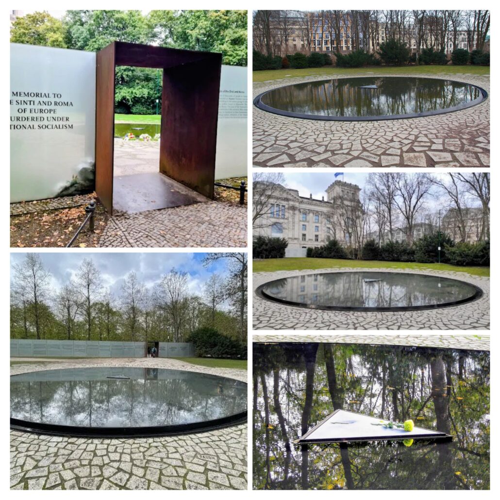 Mise à jour : En 2012 un mémorial dédié aux Sinti et aux Roms (Memorial to the Sinti and Roma Victims of National Socialism), victimes oubliées d’un génocide longtemps resté en marge de l’histoire officielle a été été conçu par l’artiste israélien Dani Karavan et se compose d’un bassin circulaire d’eau sombre au centre duquel se trouve une pierre triangulaire. La forme triangulaire de cette pierre fait référence aux insignes que devaient porter les prisonniers des camps de concentration. La pierre est rétractable et une fleur fraîche y est déposée quotidiennement.