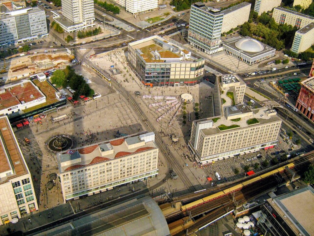 La place a pris sa forme actuelle entre 1966 et 1971, lors de la reconstruction du centre-ville de Berlin-Est, étendue à 3 hectares et transformée en zone piétonne. Sur son côté nord-ouest se dressent le grand magasin Kaufhof, l’ex-Hôtel Stadt Berlin (rebaptisé Forum Hotel en 1992, puis Park Inn en 2003), ainsi que d’autres édifices emblématiques comme le Haus der Elektroindustrie, le Haus des Reisens, la Maison de l’enseignant et la Kongresshalle.