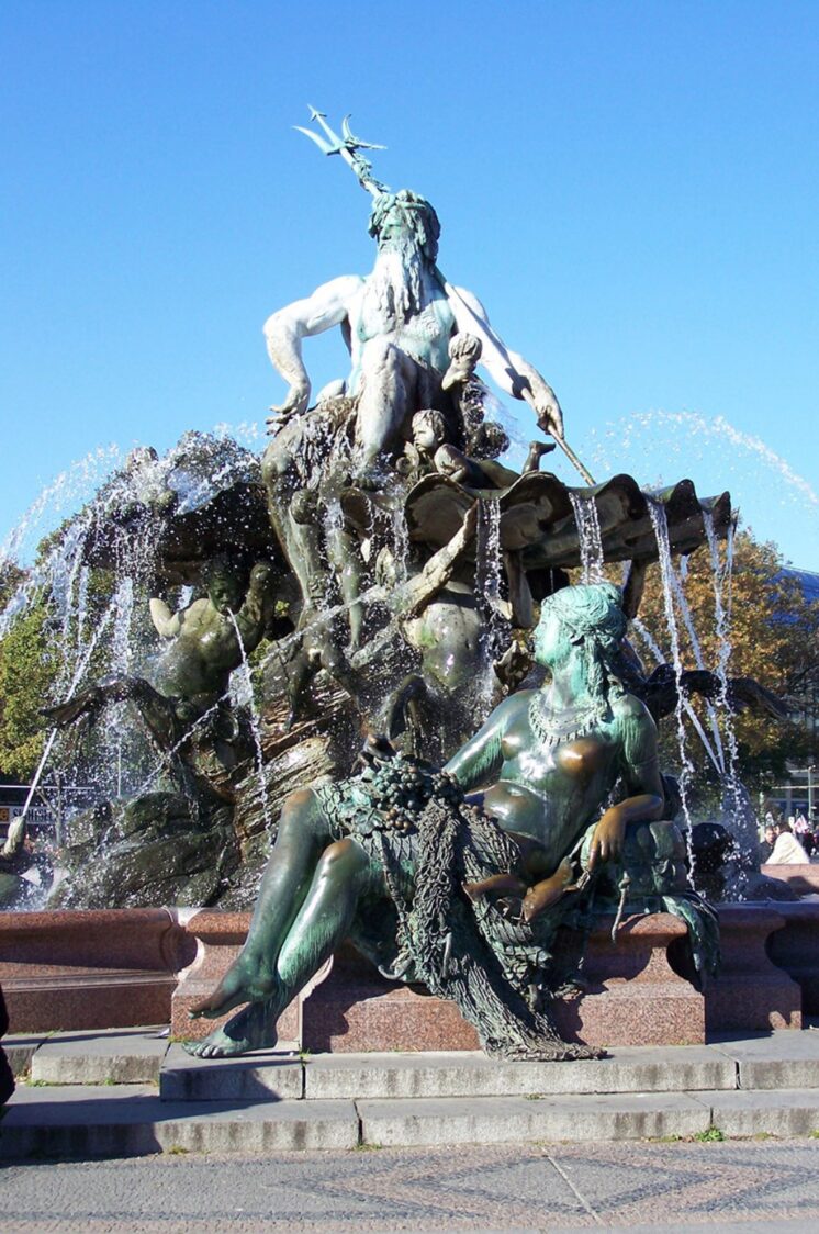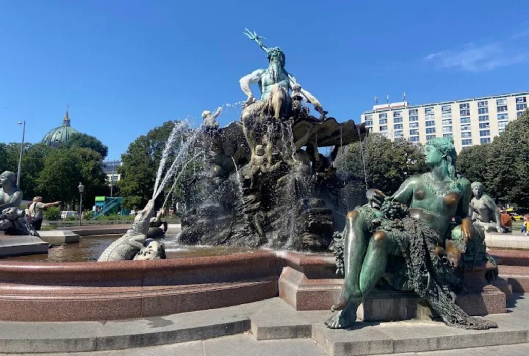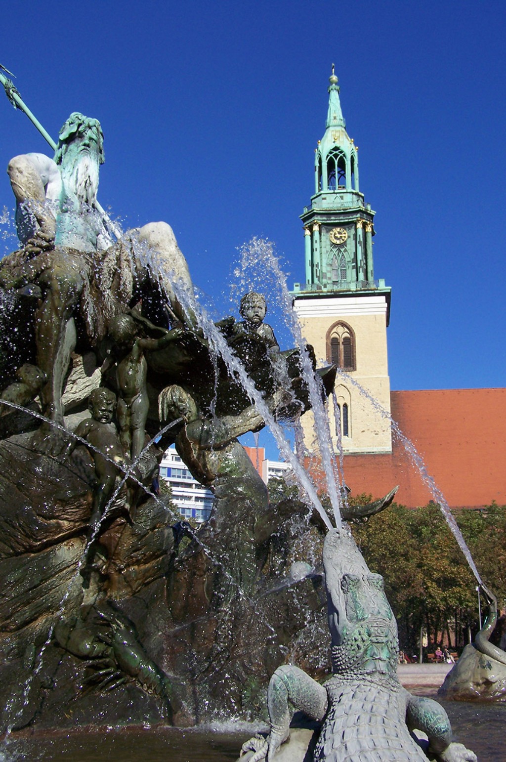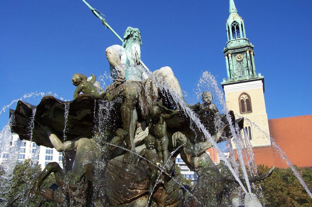 Au centre de la place, la fontaine de Neptune, sculptée par Reinhold Begas et inaugurée en 1891 avec en fond l’église Santa Maria, veille sur le flux incessant des passants.