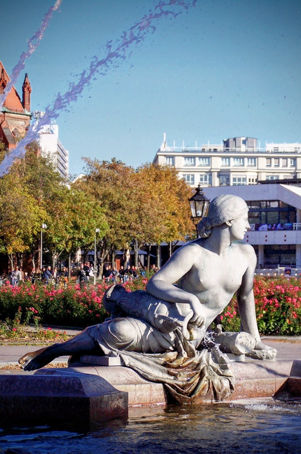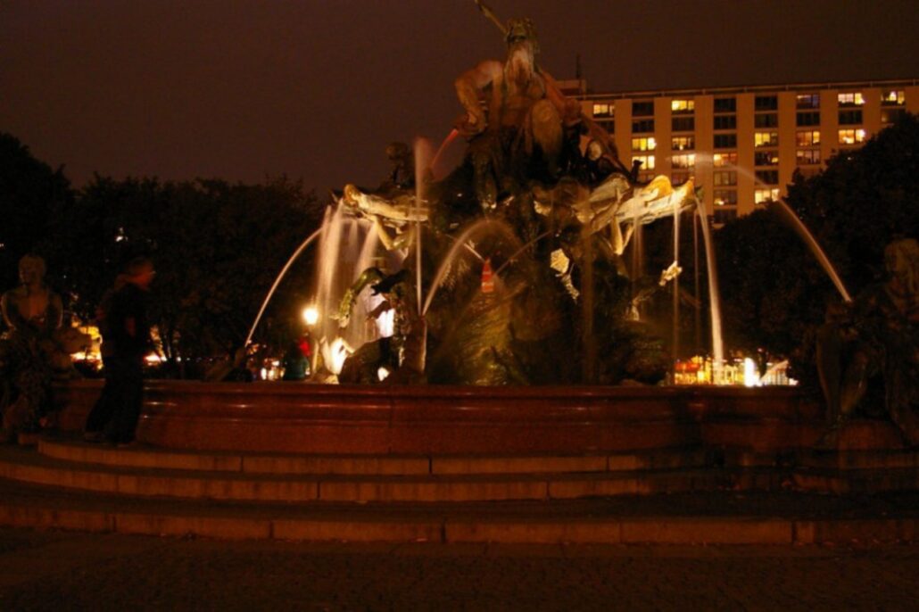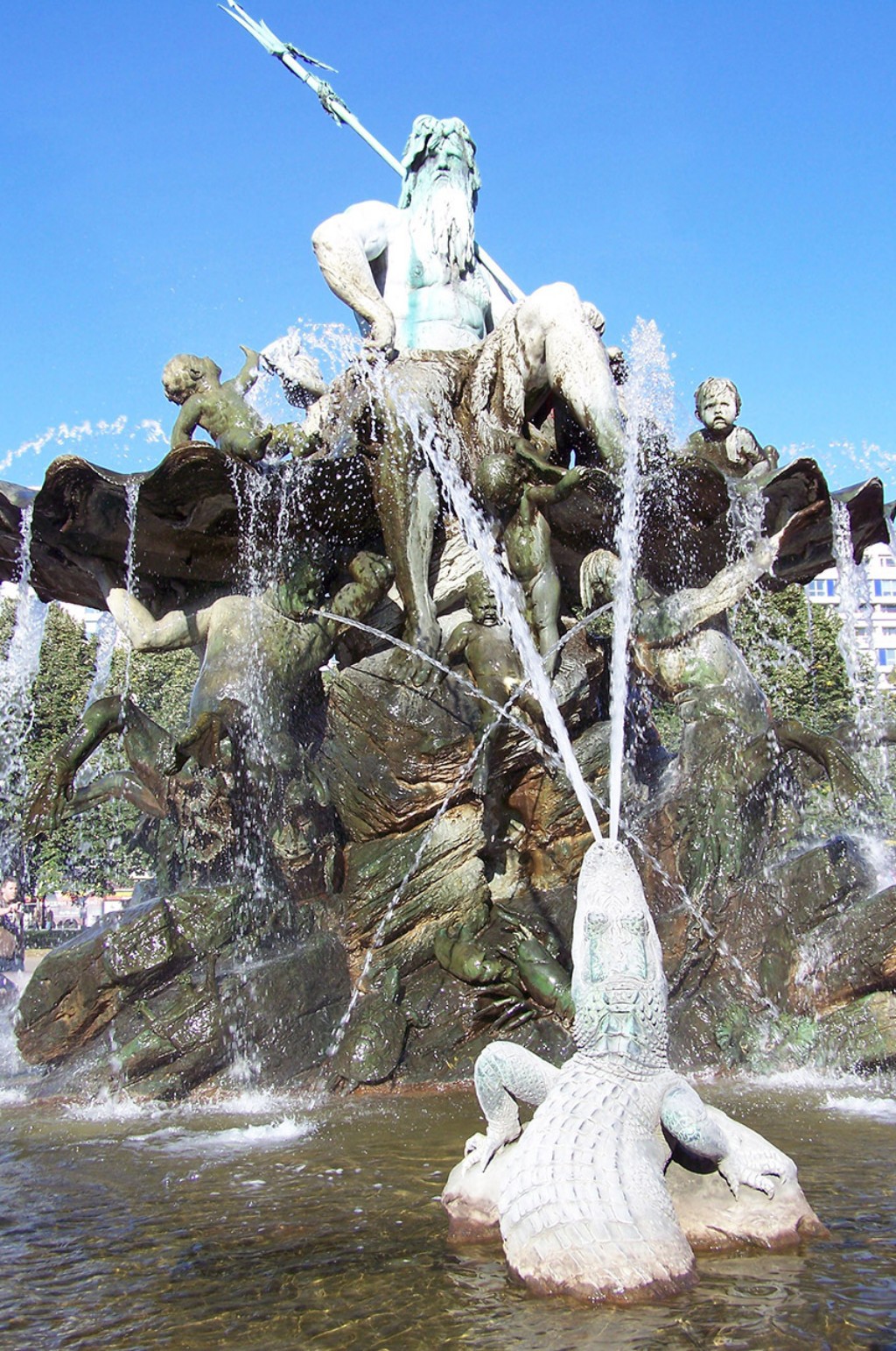Au centre de la place, la fontaine de Neptune, sculptée par Reinhold Begas et inaugurée en 1891 avec en fond l’église Santa Maria, veille sur le flux incessant des passants.