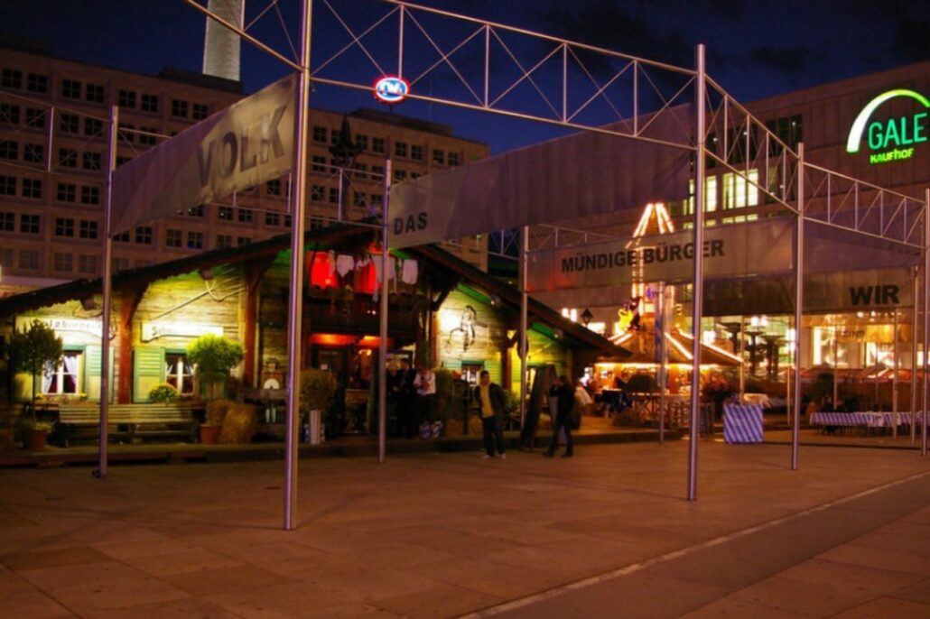 Enfin, entre le 7 mai 2009 et le 3 octobre 2010, Alexanderplatz s’est transformée en galerie à ciel ouvert avec une exposition temporaire à succès consacrée à la révolution pacifique, retraçant les événements qui ont mené à la chute du mur et à la réunification. L’esplanade, animée par ses passants, ses pavés en spirale et ses monuments, devient alors un lieu où mémoire, histoire et vie quotidienne se rencontrent, invitant chacun à lever les yeux et à contempler la ville dans toute sa complexité et sa beauté.