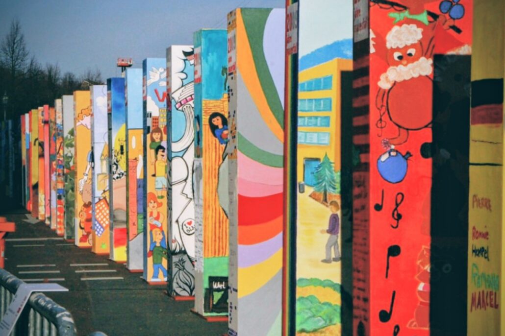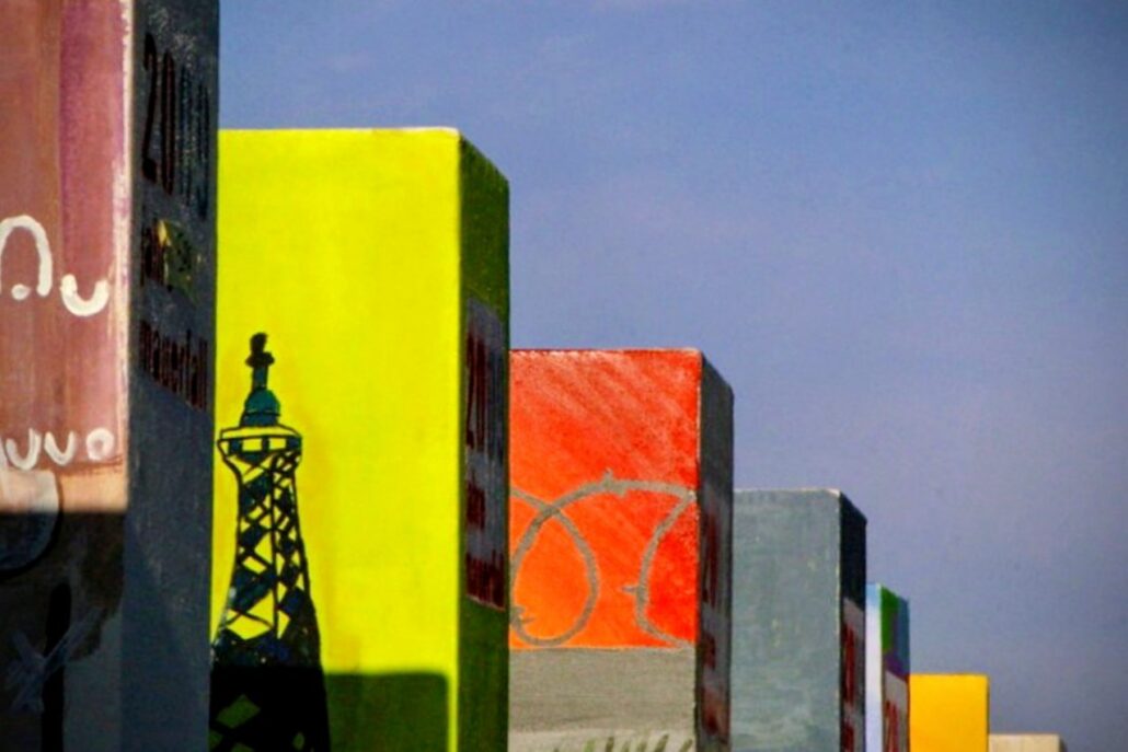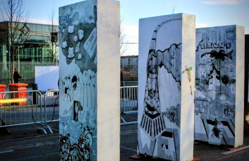 1er étape : parcourir l’ancien tracé du Mur, où ont été installés des dominos géants, prêts à tomber les uns après les autres…