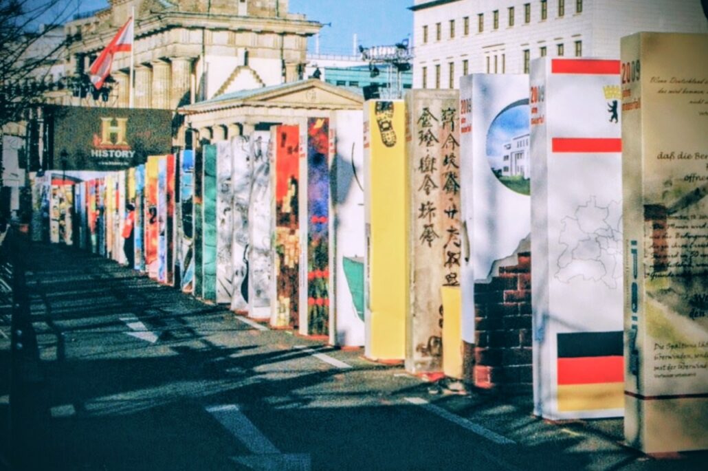 Dans deux jours, (Le 9 novembre) un événement spectaculaire attend la ville : sur l’ancien tracé du Mur, de la porte de Brandebourg jusqu’à Potsdamer Platz, près d’un millier de dominos géants en polystyrène sont déjà alignés.