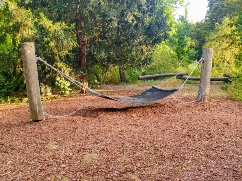 L’aménagement est volontairement peu structuré, presque brut. Quelques bancs, des hamacs, des sentiers discrets. La nature a repris ses droits. Les oiseaux sont nombreux, les écureuils peu farouches.
