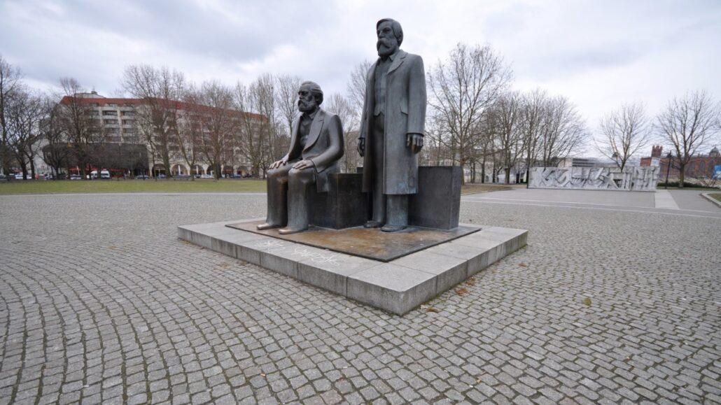 Nous poursuivons jusqu’au Marx-Engels-Forum, vaste espace hérité de l’urbanisme est-allemand. Les statues de Marx et Engels observent la ville réunifiée avec une immobilité presque ironique, comme si l’Histoire, ici, refusait de choisir un camp définitif.
