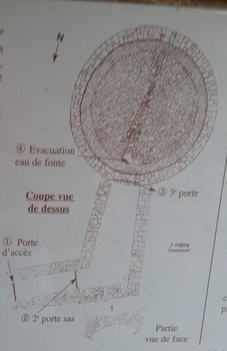 Pour finir, a l’extérieur, la glacière était entièrement recouverte de terre et de végétaux pour assurer la meilleure isolation possible. Le couloir d’accès est orienté au Nord, en forme de coude, avec trois portes successives. protégeait la glace de l’air jusqu’en mi-mai.