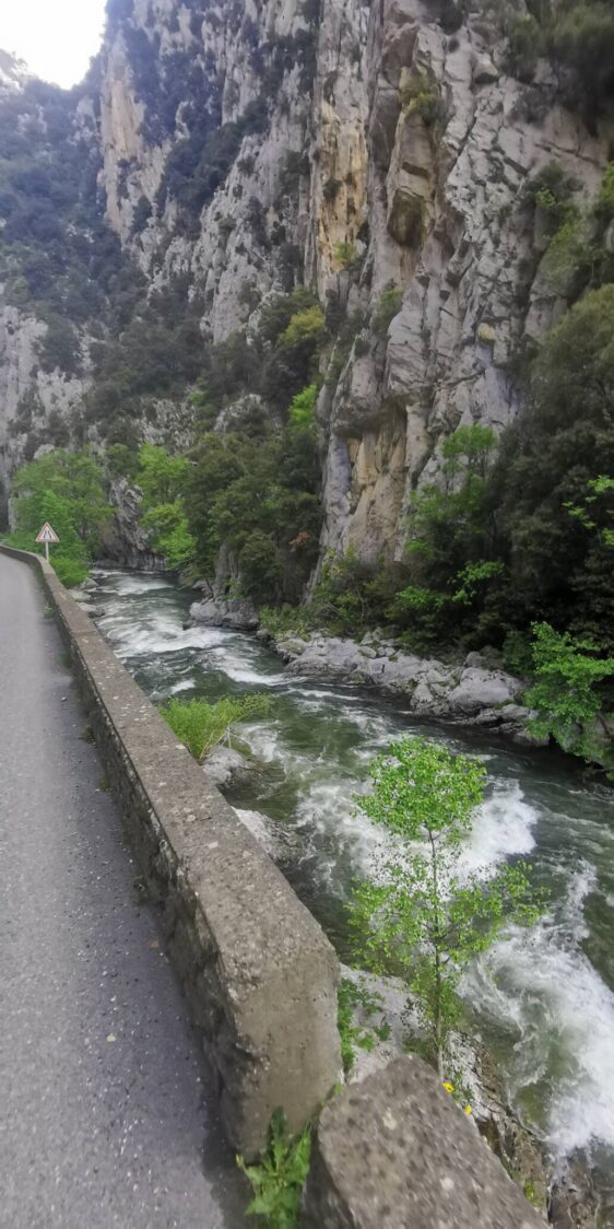 Il s’agit de gorges très étroites, formées par de véritables murailles rocheuses s’élevant de part et d’autre du torrent de la rivière Aude.