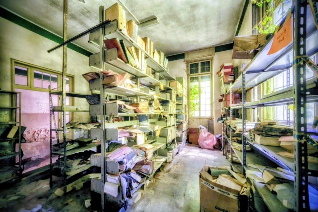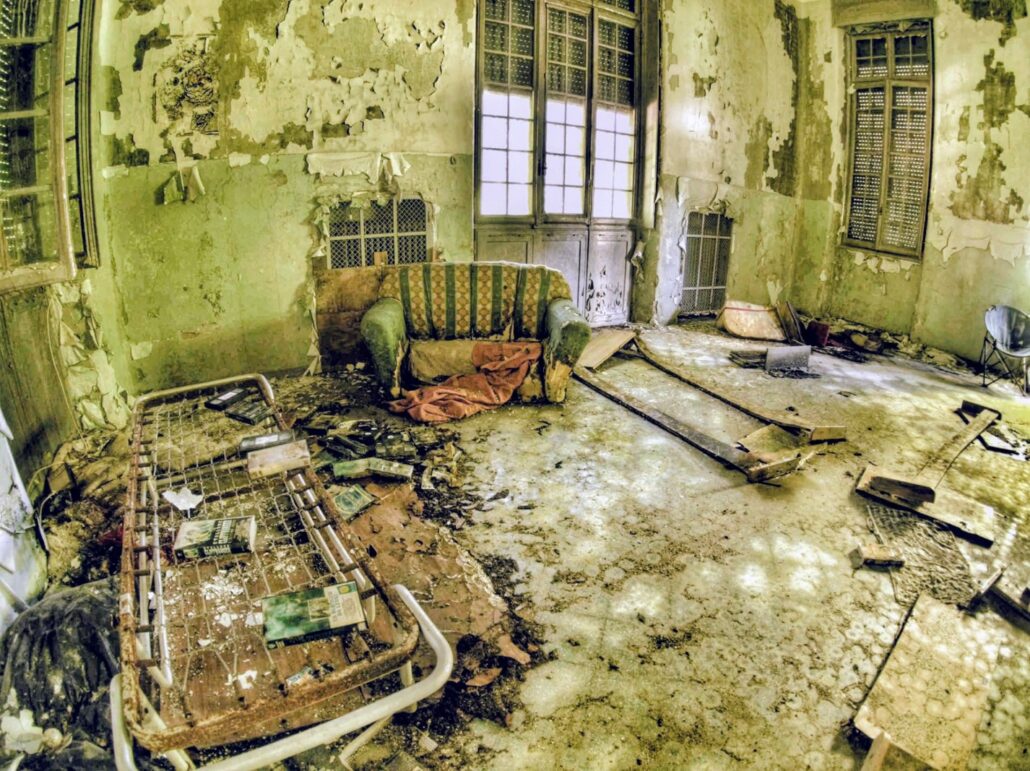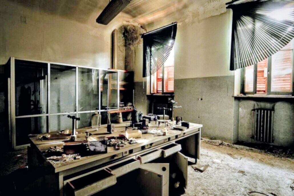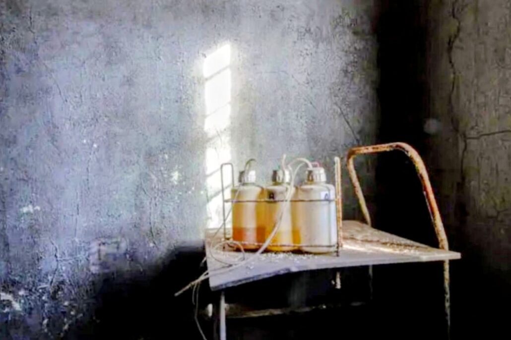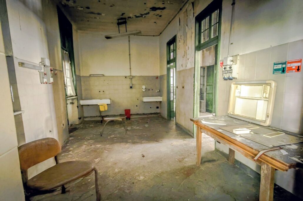 Au sol, les traces d’un passé sinistre. Des revues de psychiatrie ouvertes sur des pages jaunies, des camisoles de force déchirées, des fauteuils roulants à demi rouillés. Dans une salle de soins, une boîte métallique contenant encore des flacons d’anciens médicaments. Plus loin, un électroencéphalographe, oublié là comme une relique d’un autre siècle.