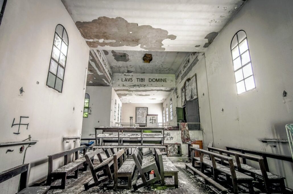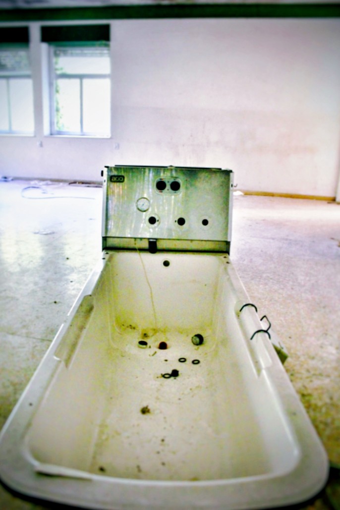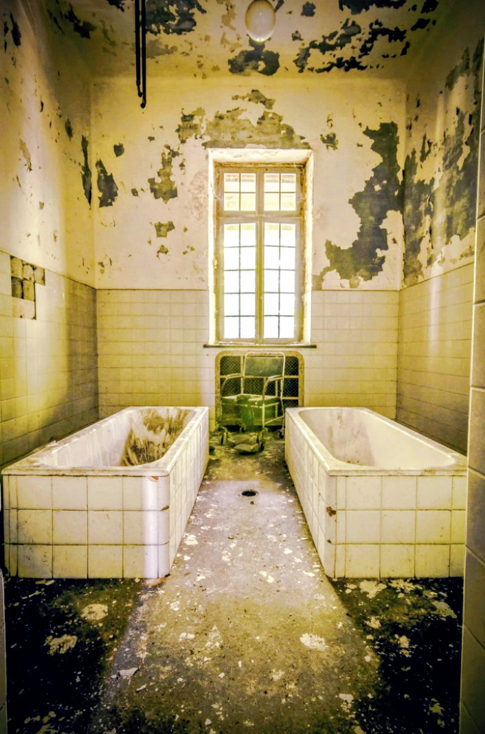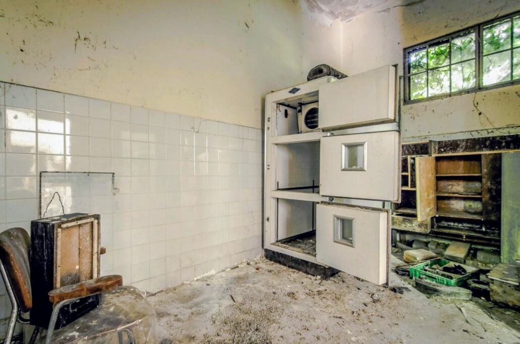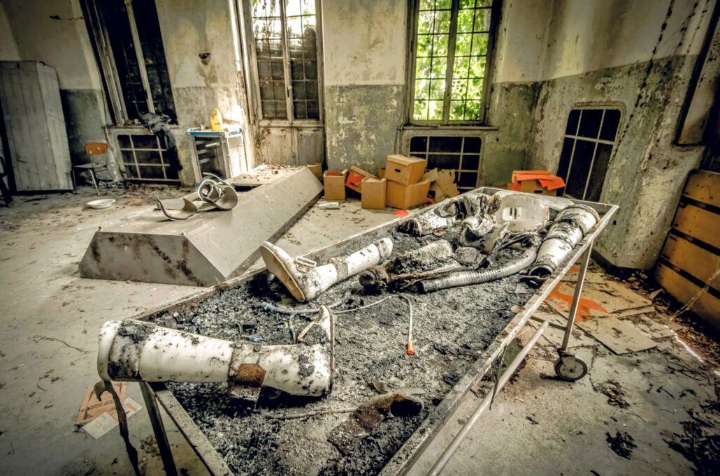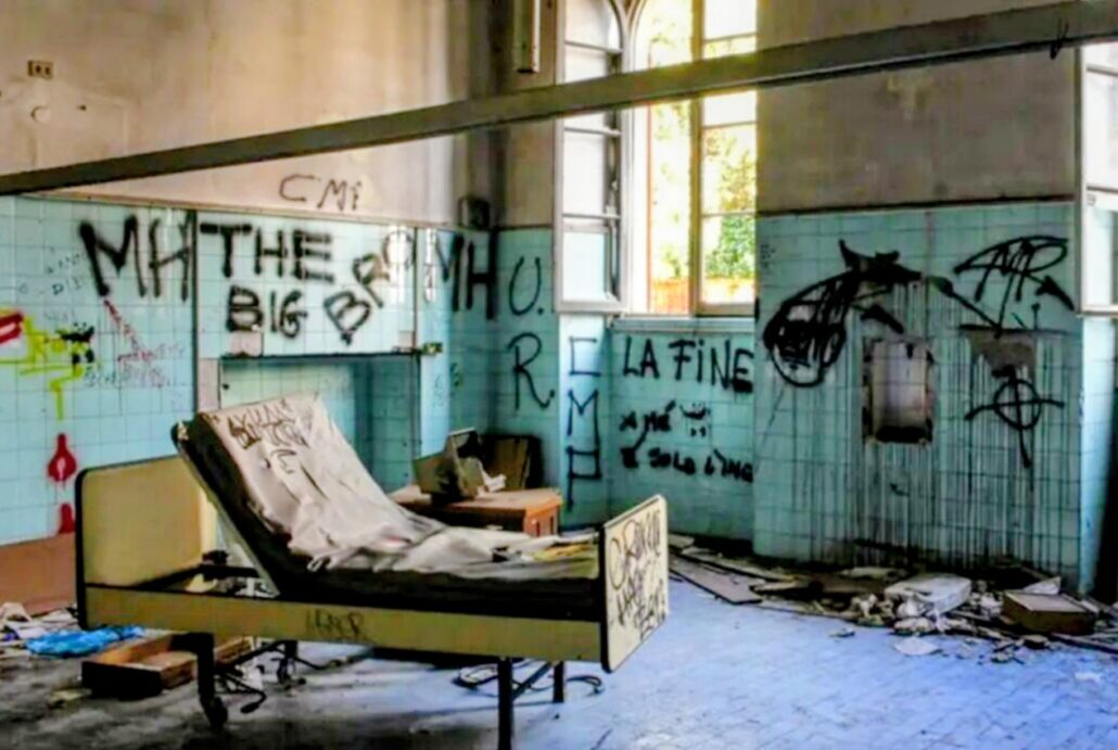 Au sol, les traces d’un passé sinistre. Des revues de psychiatrie ouvertes sur des pages jaunies, des camisoles de force déchirées, des fauteuils roulants à demi rouillés. Dans une salle de soins, une boîte métallique contenant encore des flacons d’anciens médicaments. Plus loin, un électroencéphalographe, oublié là comme une relique d’un autre siècle.