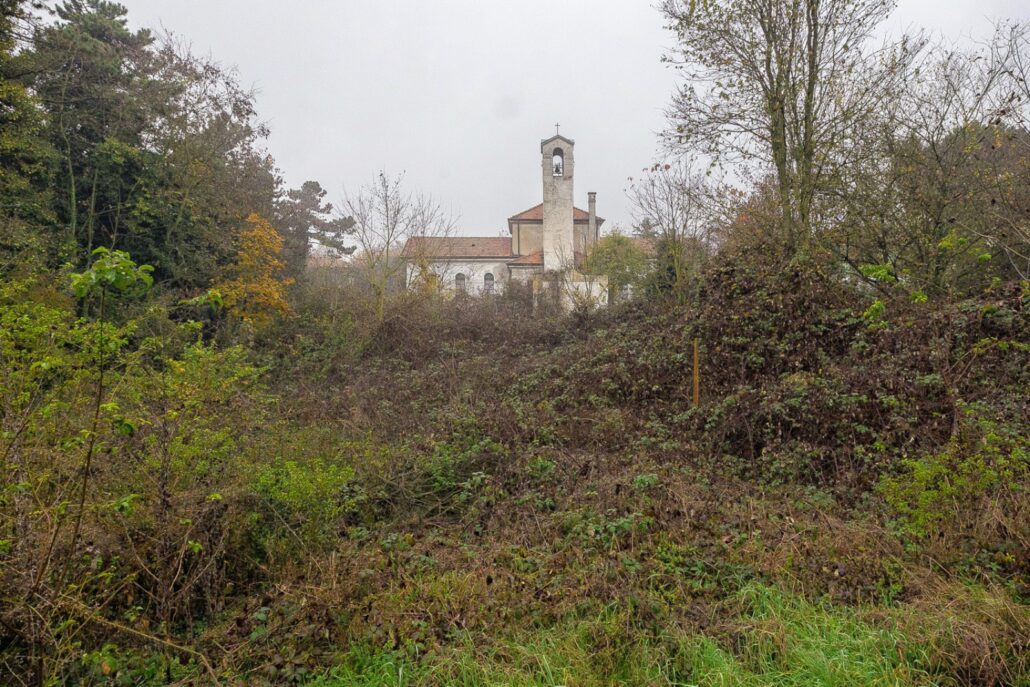Au centre, une petite église. Ses fresques, rongées par le temps, s’effritent, mais elles laissent deviner encore une part de leur éclat d’autrefois.
