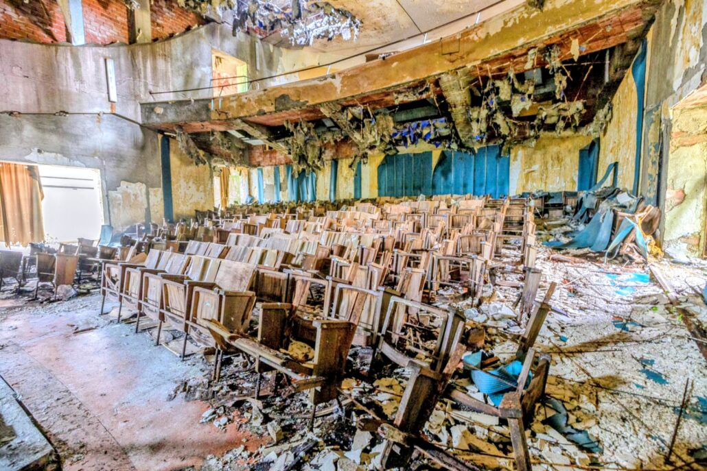 Les autres bâtiments révèlent une autre facette : la rééducation. On y trouve les restes d’un auditorium, d’un théâtre, d’une salle de sport. Tout était pensé pour donner l’illusion d’une vie sociale, d’un cadre plus humain. Il y avait même un espace réservé aux enfants et une zone d’accueil pour les familles.