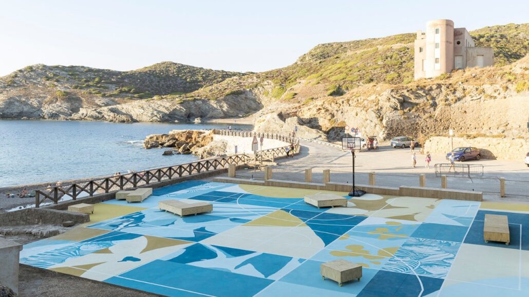 Le front de mer se transforme en quartier culturel vivant, où les œuvres des artistes Tellas (Fabio Schirru) et 2bleene (Natalia Nicole Rodriguez) s’animent sur les murs et le sol, soulignant la géométrie des anciens entrepôts et les terrains de jeu pour le basket, le volley ou le pickleball.