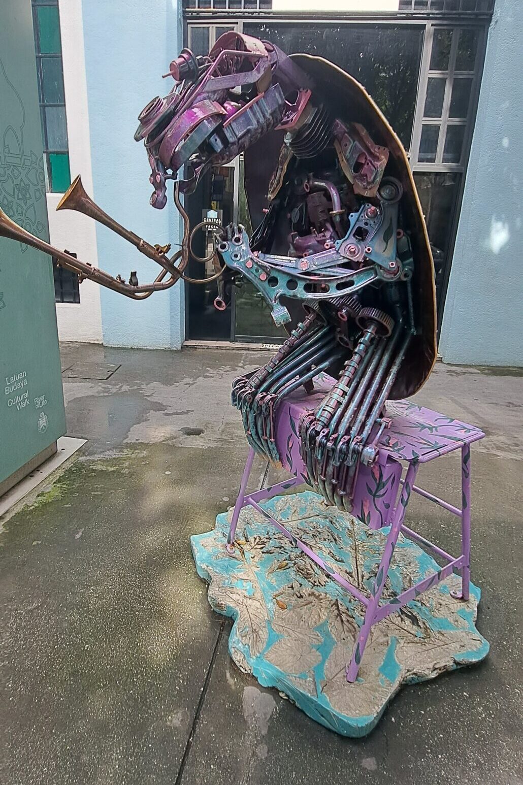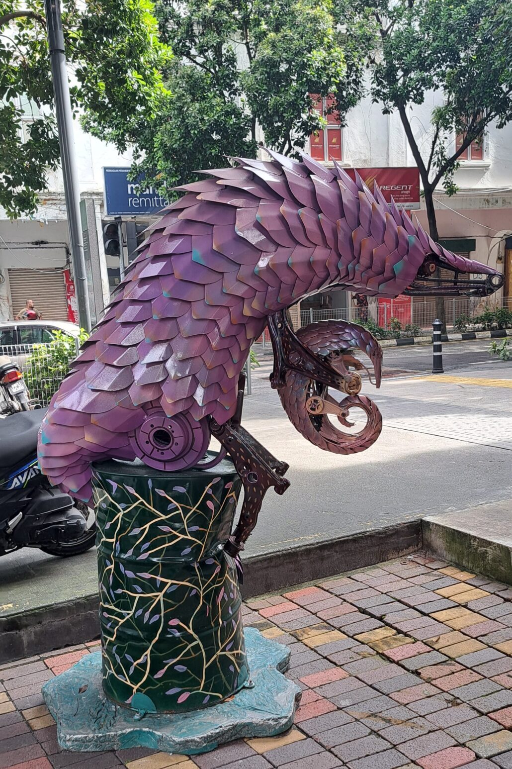 À Kuala Lumpur, il suffit parfois de sortir d’un marché pour entrer dans un musée. Autour du Central Market (Pasar Seni) et de Kasturi Walk, l’espace public s’est transformé en un parcours artistique à ciel ouvert, où la faune locale — réelle ou symbolique — a troqué la jungle pour le métal recyclé.