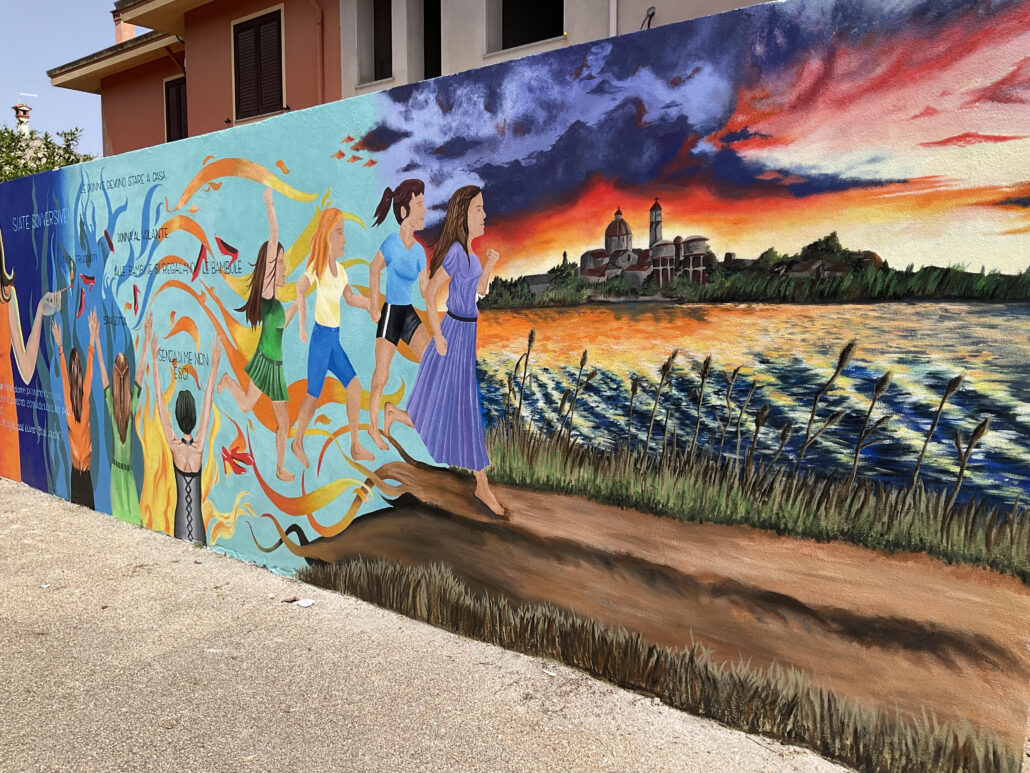 Ce mur n’est pas l’œuvre d’un artiste isolé venu apposer une signature. Il a été réalisé collectivement par des élèves de l’Istituto artistico Carlo Contini d’Oristano, avec la participation de collégiens de Cabras et de leurs enseignants.