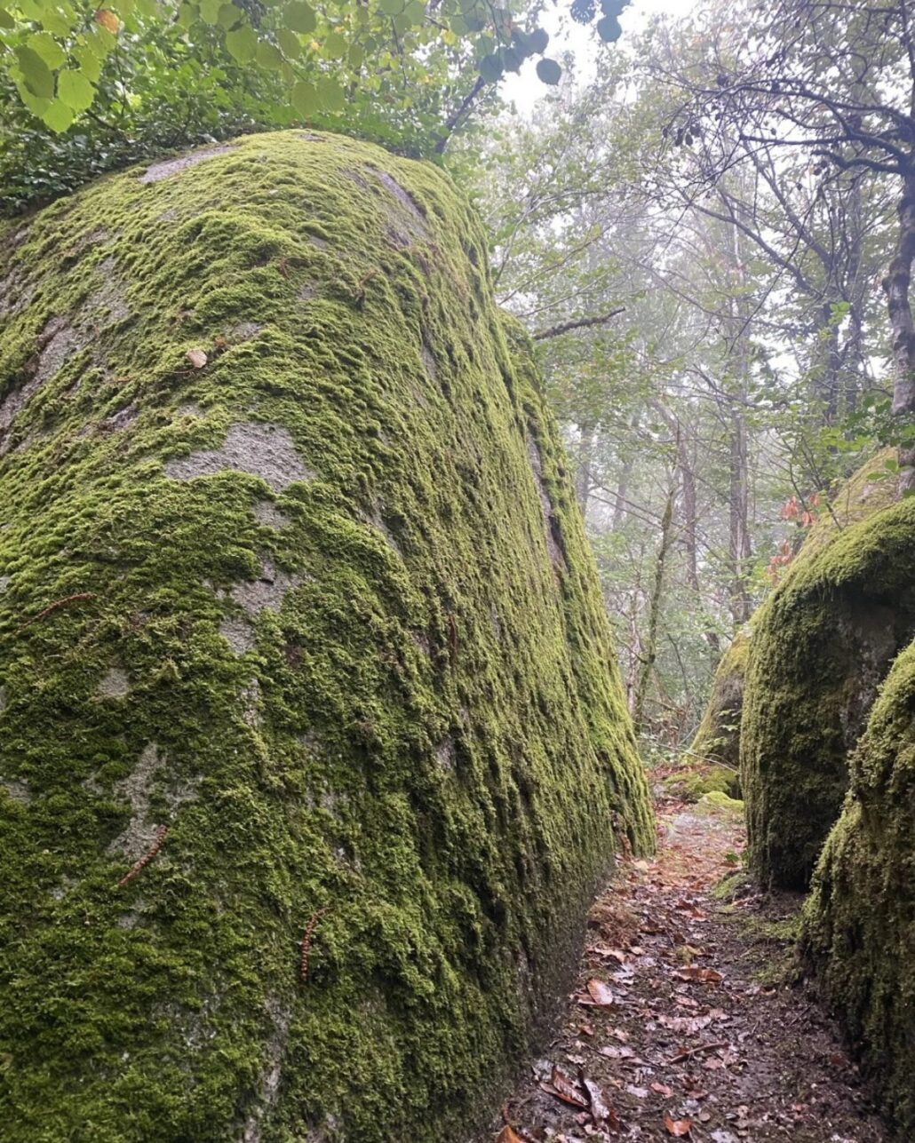 🔸Le sentier de la Rivière de Rochers En contrebas de la départementale 30 s’étend une étonnante rivière… mais sans eau apparente. Ici, ce sont les rochers qui dessinent le lit du courant. Sous ces énormes blocs de granit, on devine pourtant le murmure discret du ruisseau du Lignon, caché dans les entrailles de la pierre.On suit le chemin des pêcheurs, serpentant entre mousse et granit, et peu à peu se révèle un paysage minéral d’une rare beauté : la rivière de rochers, aussi appelée chaos de la Resse et de Feuillebois.Un lieu presque secret, façonné par le temps, où l’eau et la pierre semblent s’être donné rendez-vous depuis des millénaires.…