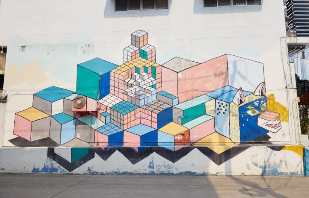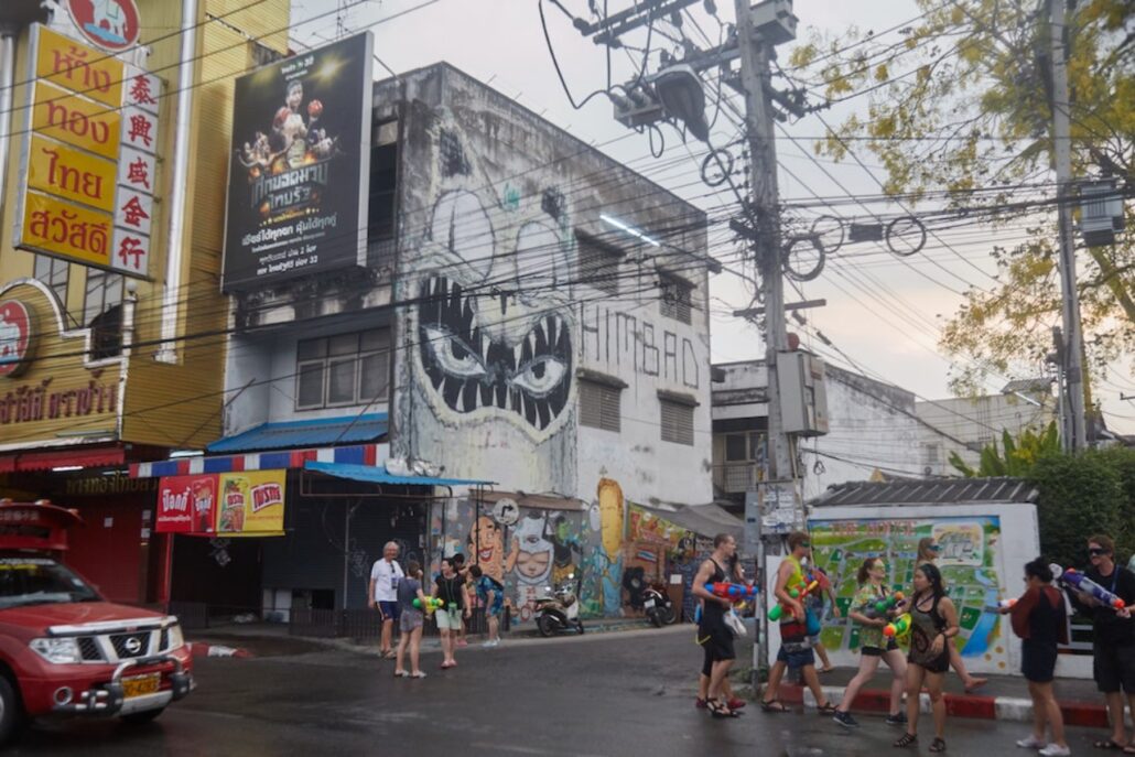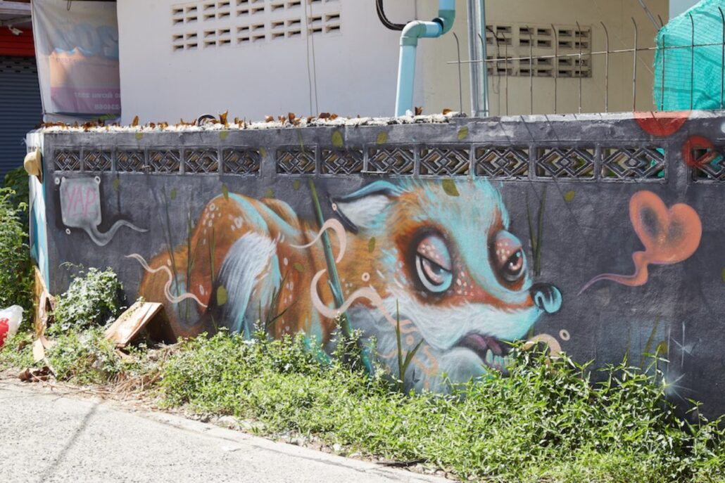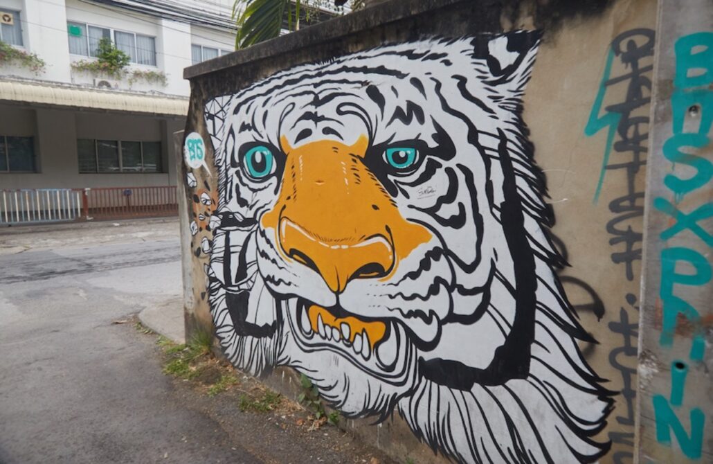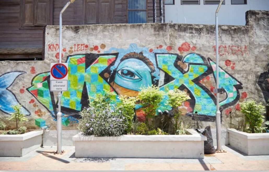 Dans la vieille ville, le street art se cache souvent dans les petites ruelles et sur les façades discrètes. Près de Tha Phae Gate, on peut croiser des fresques aux couleurs vives qui attirent l’œil des passants. Du côté des cafés branchés et des guesthouses, notamment le long de Ratchadamnoen Road ou dans les rues secondaires comme Moon Muang Soi 9, les murs se parent de dessins originaux, parfois signés par des artistes locaux ou étrangers de passage.