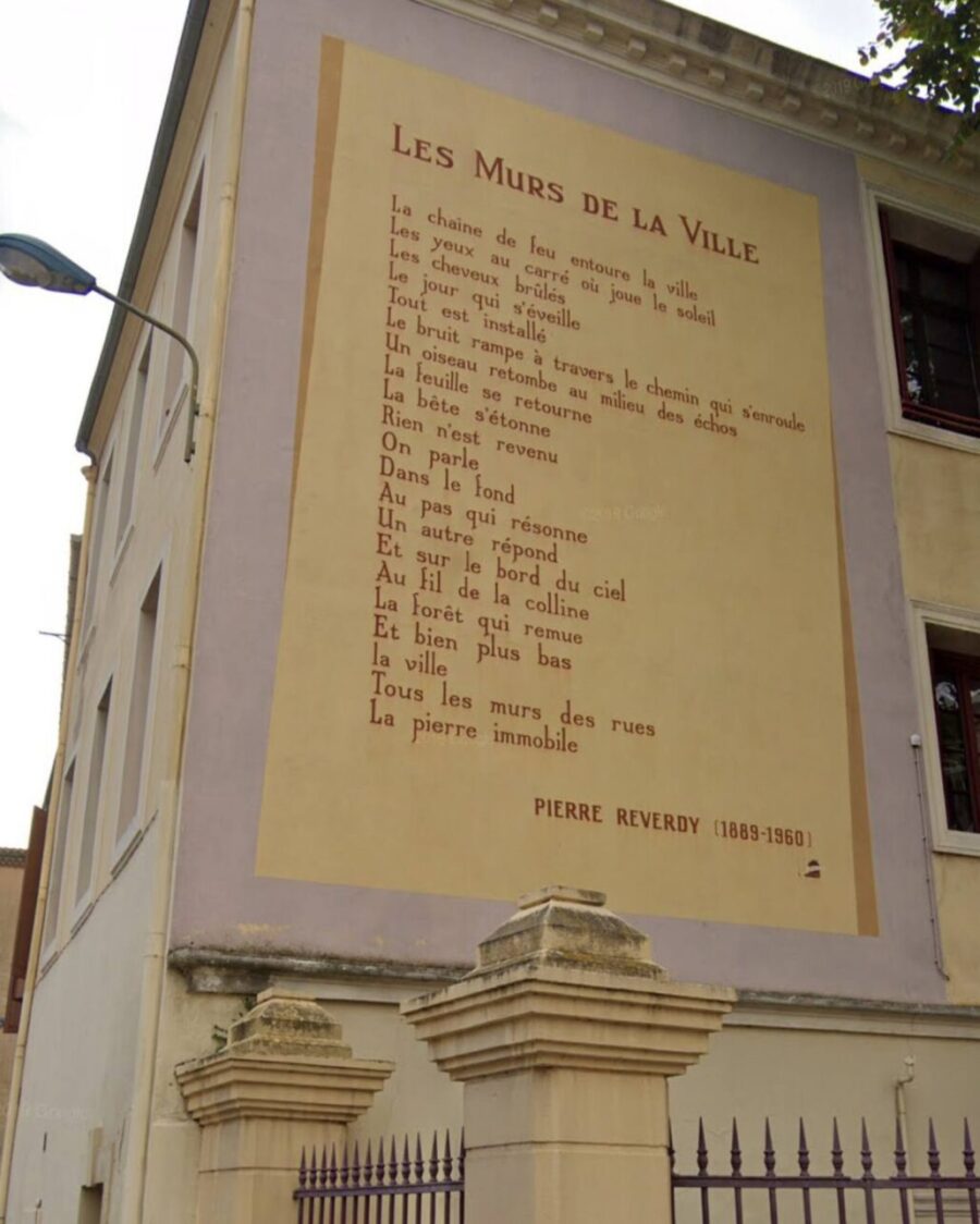 Pendant des années, ce mur portait un poème de Pierre Reverdy, enfant de Narbonne, figure majeure de la poésie du XXᵉ siècle.