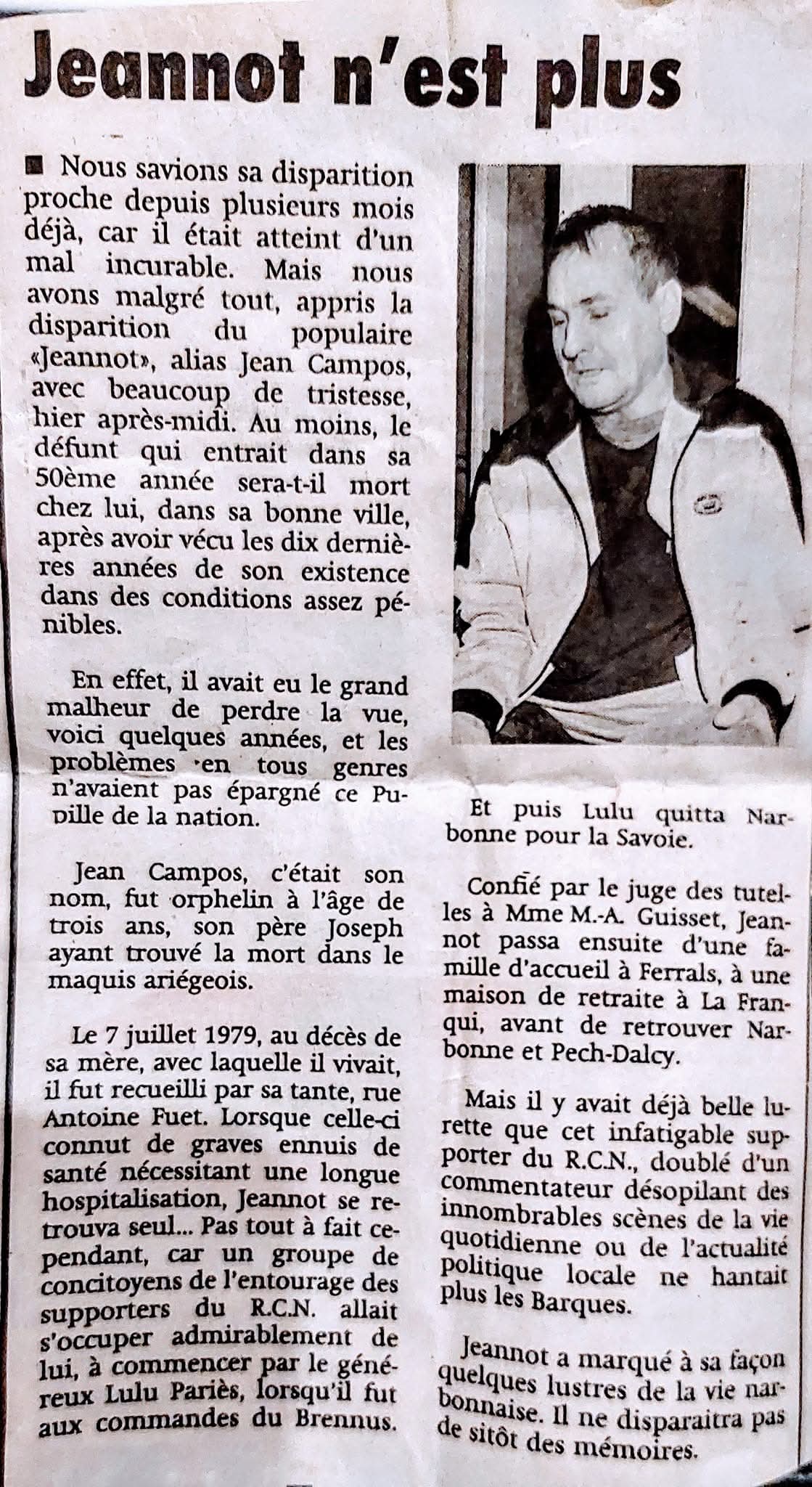 Jeannot est une figure bien-aimée de Narbonne, particulièrement dans les années 1980-1990. Passionné de rugby, il arpentait inlassablement les rues de la ville, traversant les bars plusieurs fois par jour pour commenter avec enthousiasme les matchs du week-end. Sa présence était presque omniprésente, et il se faisait un plaisir d’échanger avec les autres supporters sur les performances de l’équipe locale.