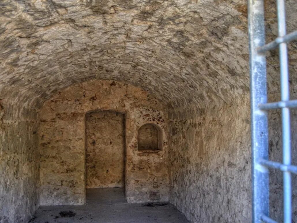 On y découvre encore les rails qui servaient à déplacer les explosifs, glissant entre les murs blancs du fort avant d’être hissés jusqu’aux plates-formes d’artillerie.