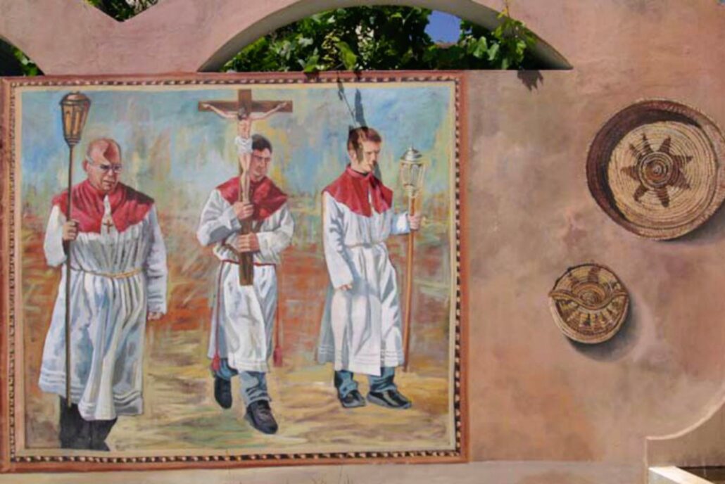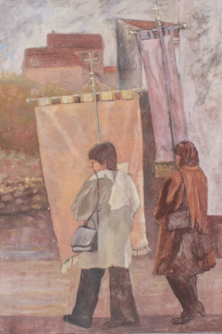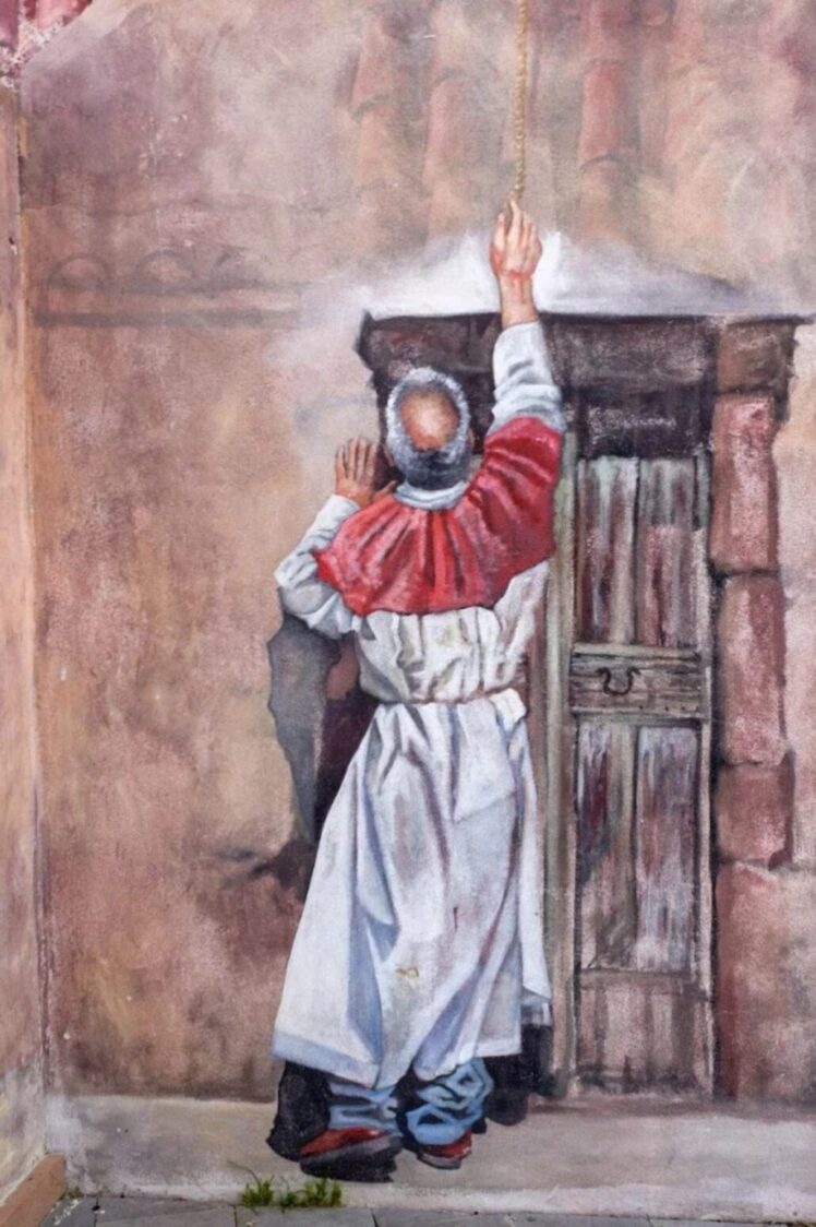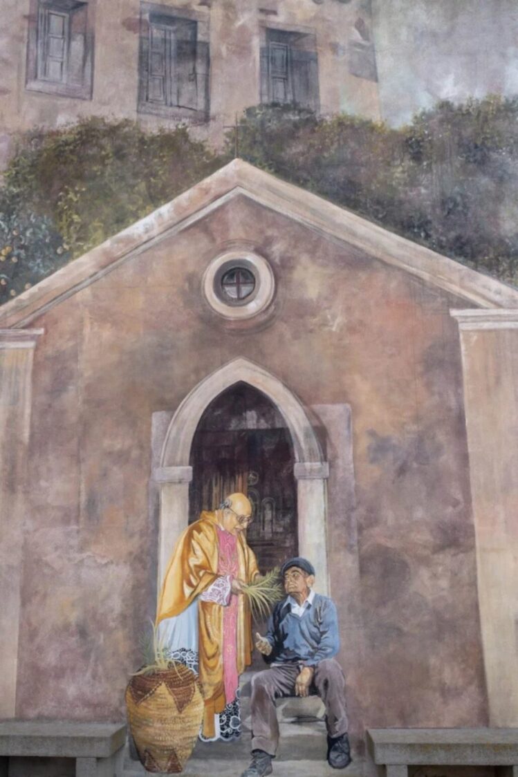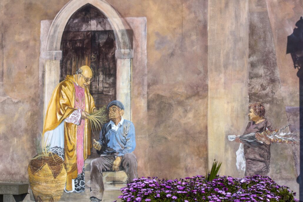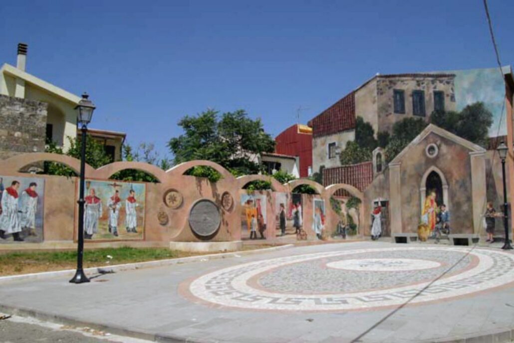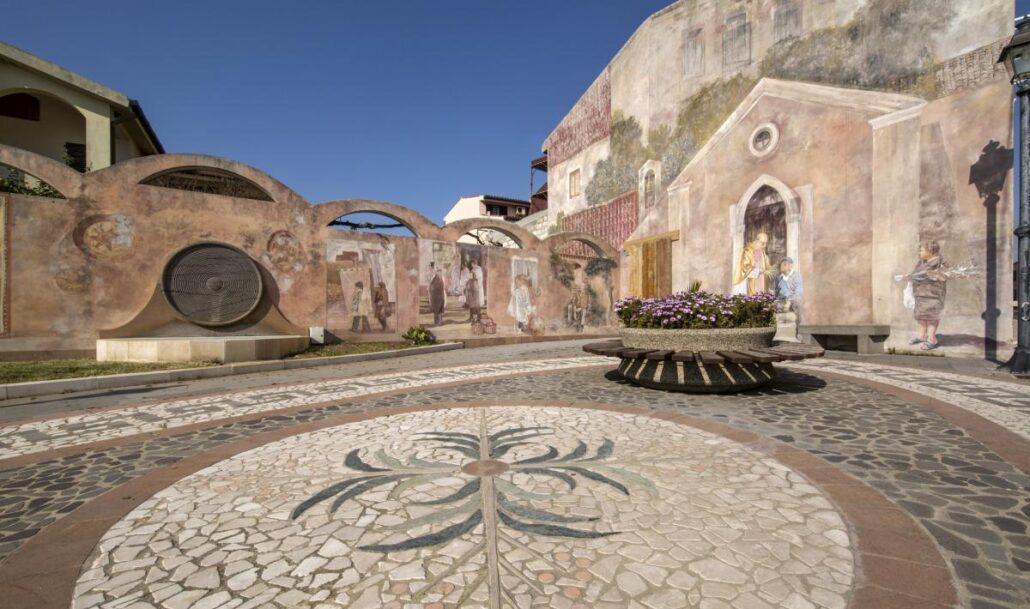 Si Flussio n’offre pas la même profusion de peintures murales que sa voisine Tinnura, il n’en possède pas moins un petit trésor. Sur une place du centre, quelques fresques anciennes racontent, à leur manière, la vie et l’âme du village. La qualité picturale y est remarquable : les personnages, simples et réalistes, semblent faire corps avec le décor. Les peintures ne se contentent pas d’orner les murs — elles dialoguent avec la rue, avec ceux qui passent, comme si elles faisaient partie intégrante du quotidien.