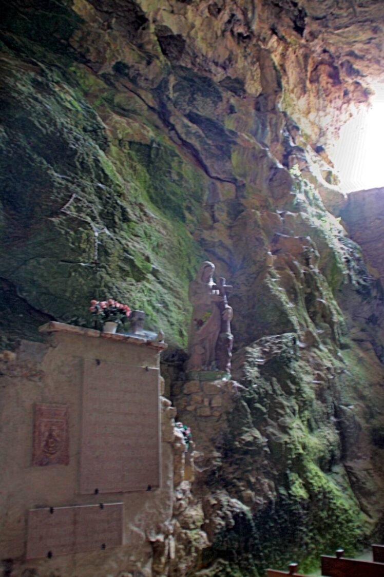 Accroché à la paroi, c’est une création de toutes pièces d’un moine venu s’exiler dans cette grotte qu’il aménagea.