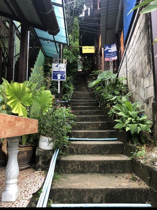 Ici, impossible de se perdre. Le sentier est pavé et balisé depuis le village, et mène directement à une petite guérite où vous devrez payer un droit d’entrée de 30 bahts (moins de 1 €). Ce ticket vous donne aussi accès au point de vue suivant. L’argent est utilisé pour entretenir la zone, habitée par quelques familles locales.