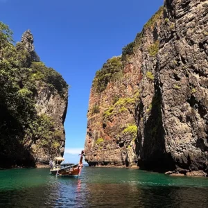 Encore plus secrète, la Wang Long Bay est l’un des endroits les plus préservés de Koh Phi Phi, à l’abri des regards et des foules de touristes. Cette petite baie est connue pour ses rochers immenses, ses eaux claires et son littoral intact. Pour y accéder, tu devras emprunter un sentier escarpé ou un petit bateau traditionnel depuis l’île principale.