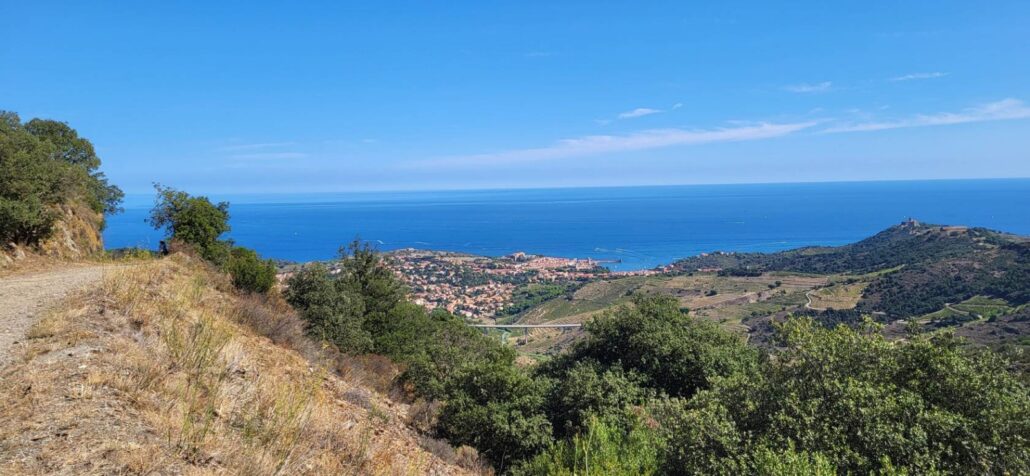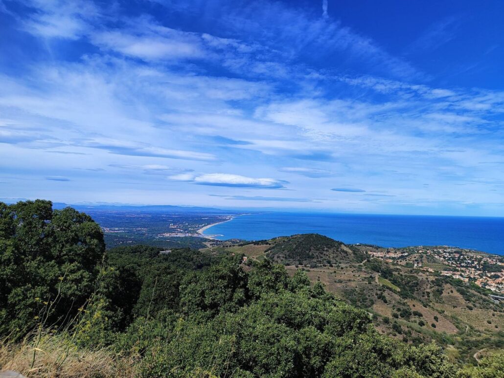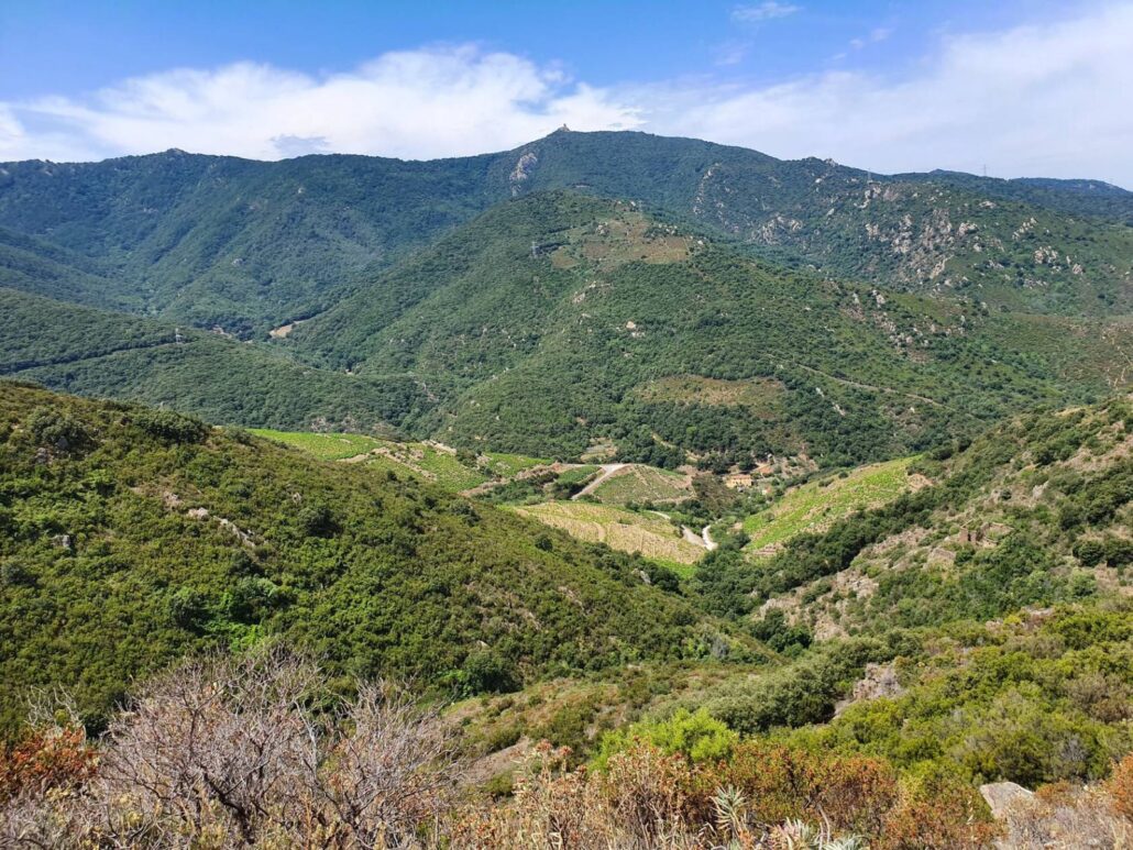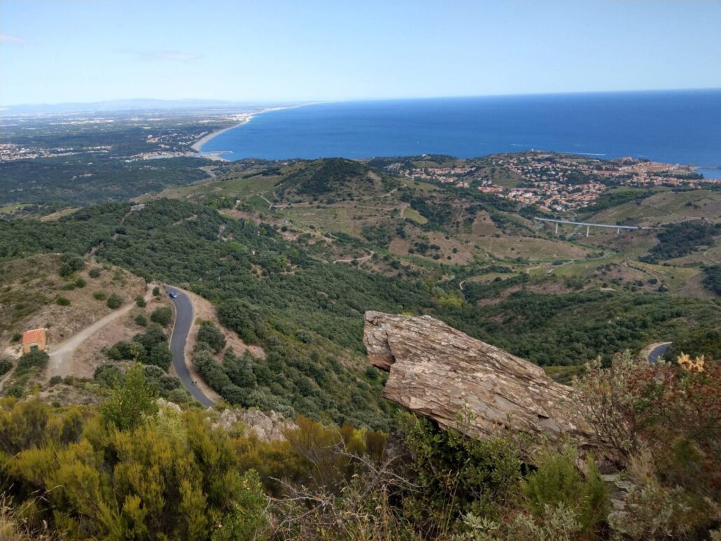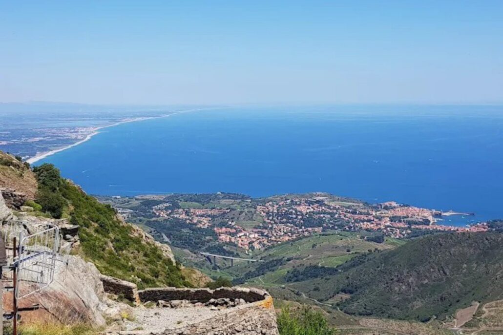 À chaque virage, un tableau : d’un côté, la Côte Vermeille, ses criques turquoise et ses ports tranquilles ; de l’autre, les vignes qui grimpent, obstinées, jusqu’aux crêtes.