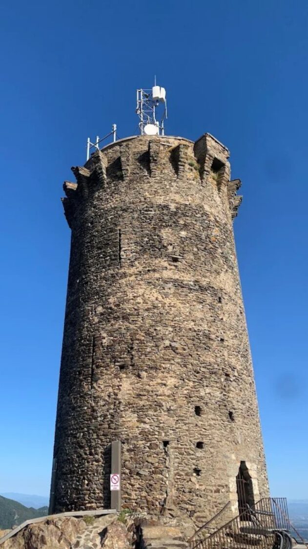 Dressée sur son piton rocheux à 652 mètres d’altitude, la Tour de la Madeloc domine la Méditerranée comme une sentinelle immobile. Construite au XIIIᵉ siècle, elle fait partie du système de tours à signaux érigées sous le règne de Jacques II de Majorque pour protéger le Royaume de Majorque, qui englobait alors le Roussillon, le Vallespir et la Cerdagne.