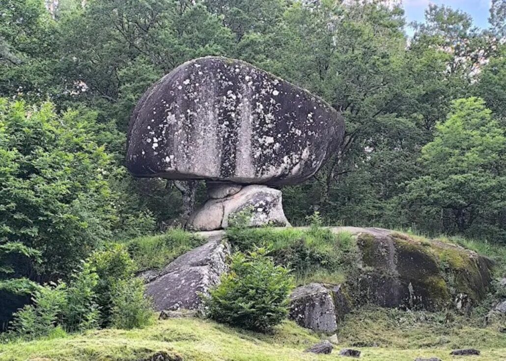 Il doit son nom à sa forme étonnante de bicorne, rappelant le célèbre couvre-chef de l’empereur. Posé sur une base étroite, il semble prêt à basculer au moindre souffle de vent, défiant pourtant les siècles avec une élégance toute impériale. Entouré de pins et de châtaigniers, le site dégage une atmosphère paisible, presque solennelle. C’est l’une des étapes marquantes du Sentier des Légendes, où la nature semble s’amuser à sculpter l’histoire dans la pierre.