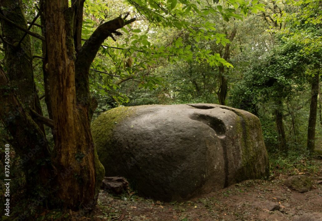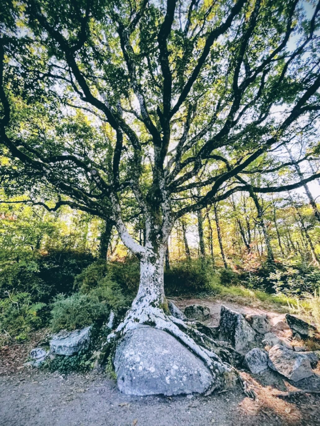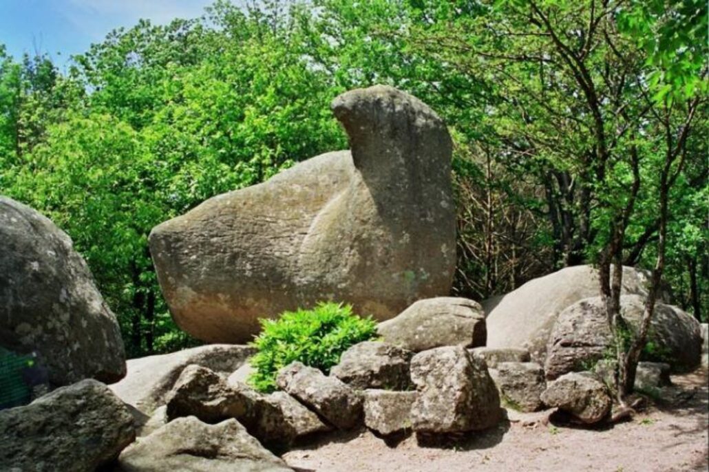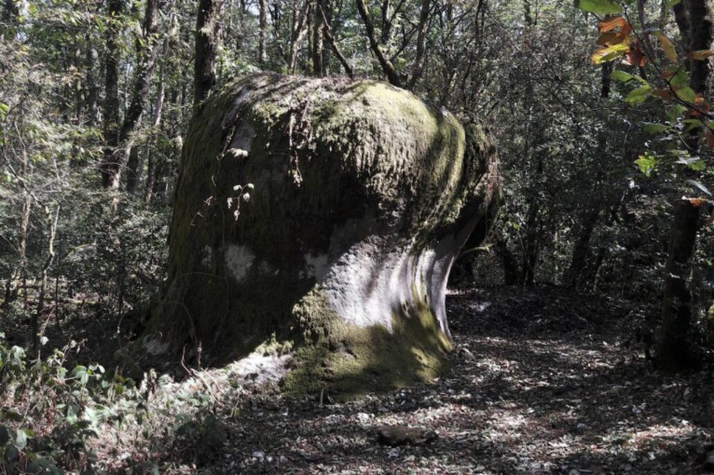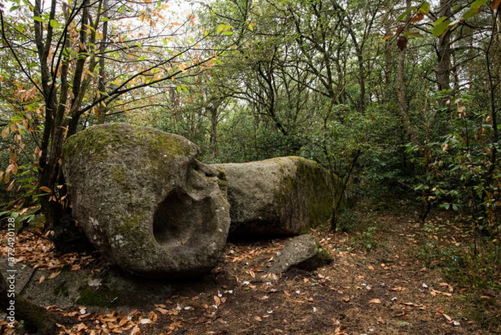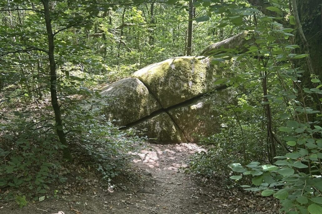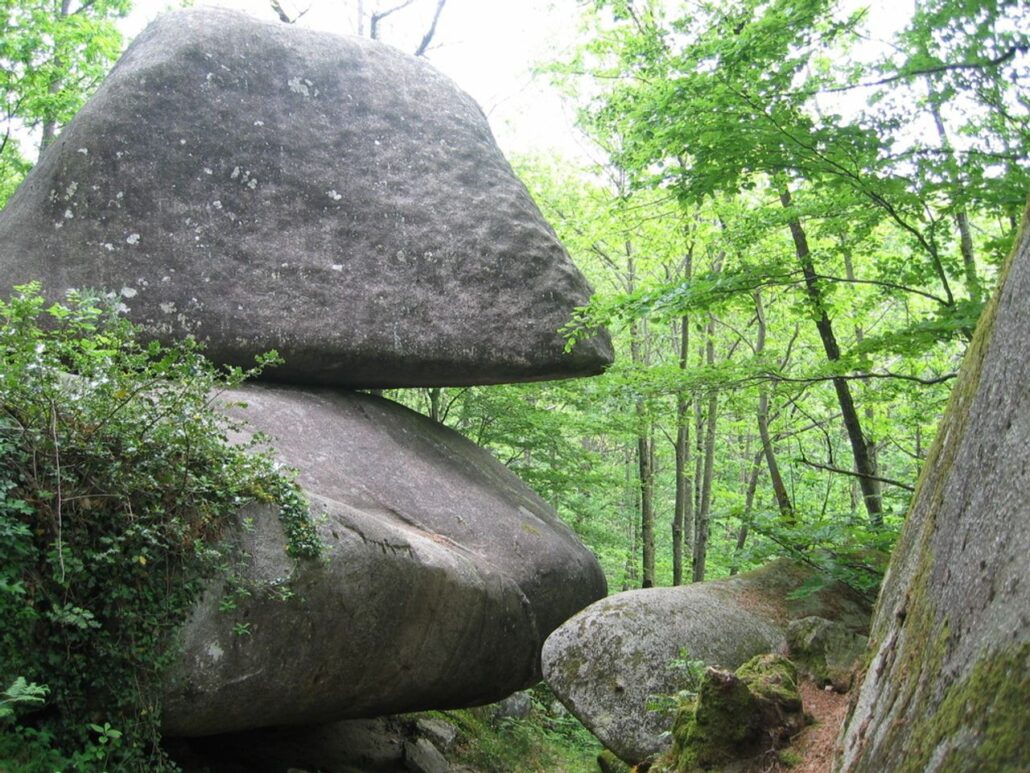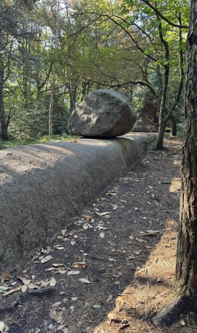 Sous les chênes et les pins, les pierres se dressent, s’empilent ou s’enchevêtrent, parfois couvertes de mousse, parfois fendues par les racines d’un arbre téméraire.