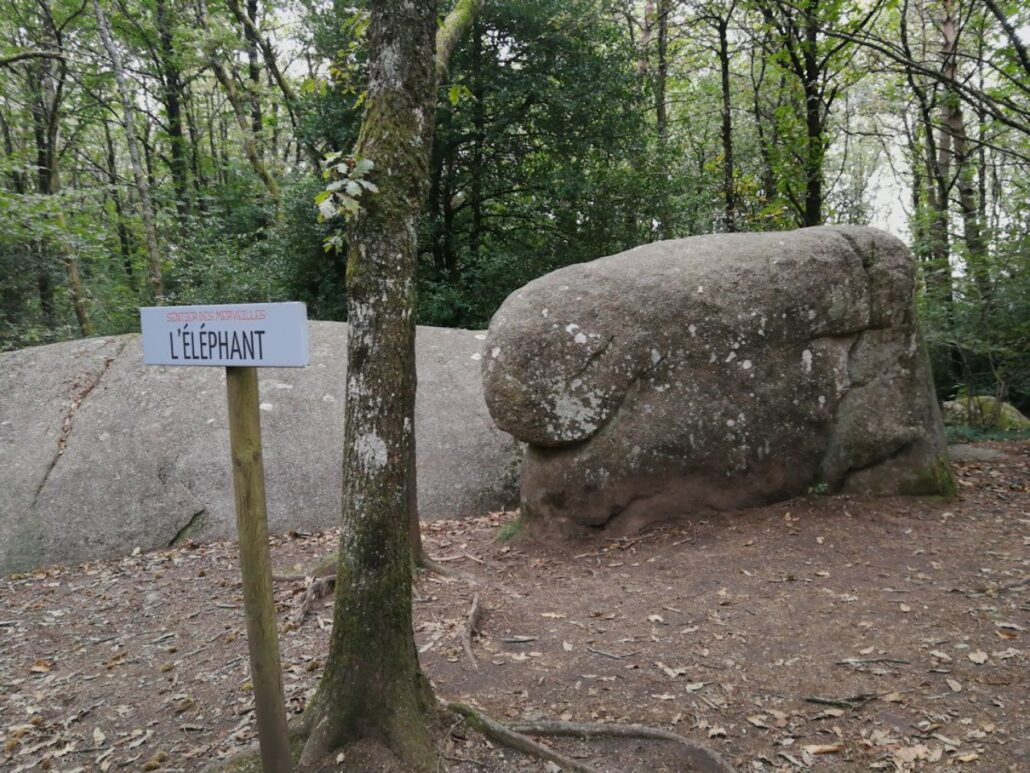 Une boucle plus sportive d’environ 8 km (2h30 à 3h) à travers un décor de forêt, de blocs monumentaux et de légendes. On y retrouve plusieurs géants de pierre : le Roc de l’Oie, les Trois Fromages, le Billard et l’Éléphant.