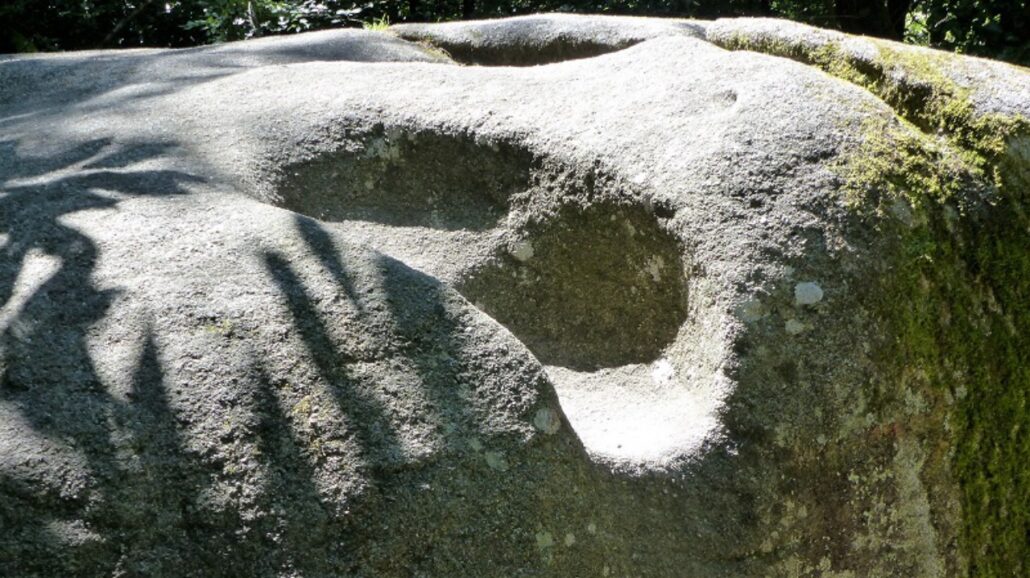 Ces marmites semblables à des traces de pieds d’hommes ou d’énormes animaux, lui avaient valu autrefois le nom de « Roc des Pattes ».