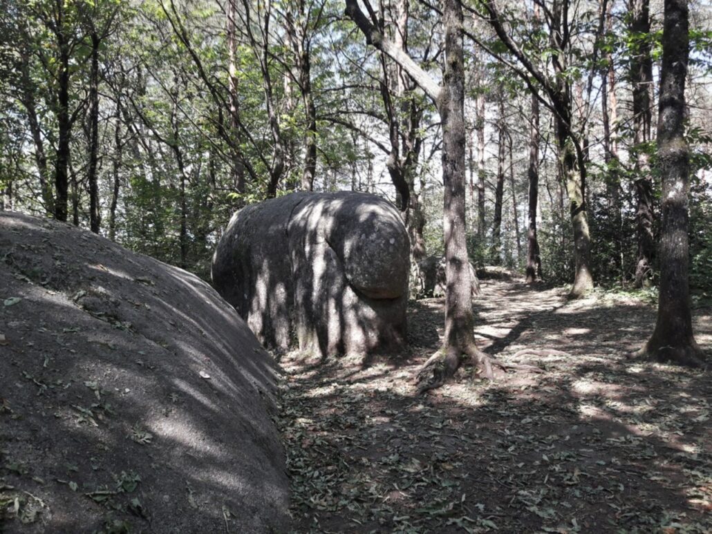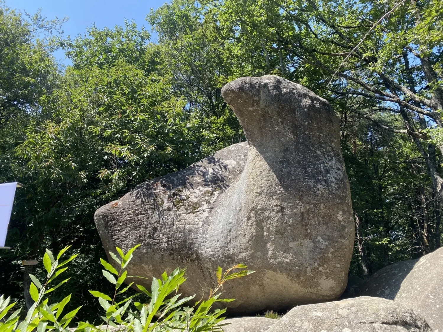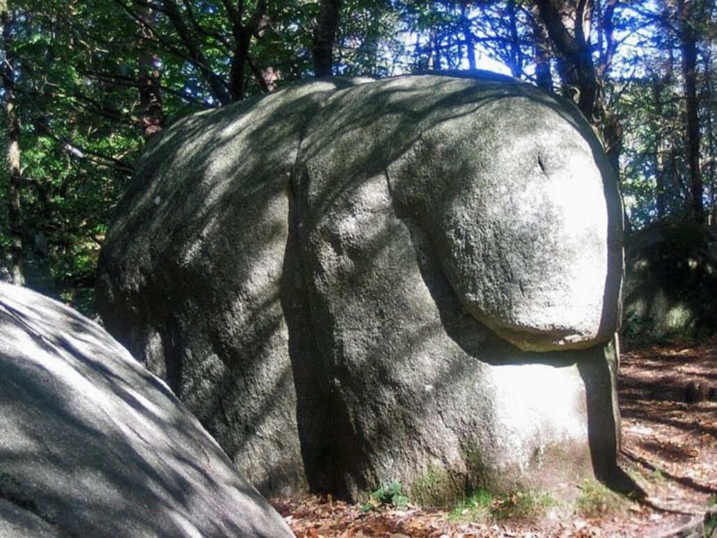 Le rocher de l’éléphant un colosse protecteur du Sidobre, pétrifié pour veiller sur la forêt. J’avoue, j’ai beau tourner autour, je n’y vois pas vraiment une trompe ni de grandes oreilles. Non, moi, ce bloc de granite me parle autrement : il me fait penser à un obus. Un obus géant, tombé là en plein cœur de la forêt, figé depuis des millénaires, comme si le temps s’était arrêté juste avant l’impact. Sa surface grise et râpeuse porte les traces des siècles, polie par la pluie, le vent et les regards des curieux. Ici, la nature s’amuse à jouer les sculptrices, et chacun y projette son propre imaginaire. Certains voient un éléphant paisible, moi j’y vois la mémoire d’une explosion qui n’a jamais eu lieu.