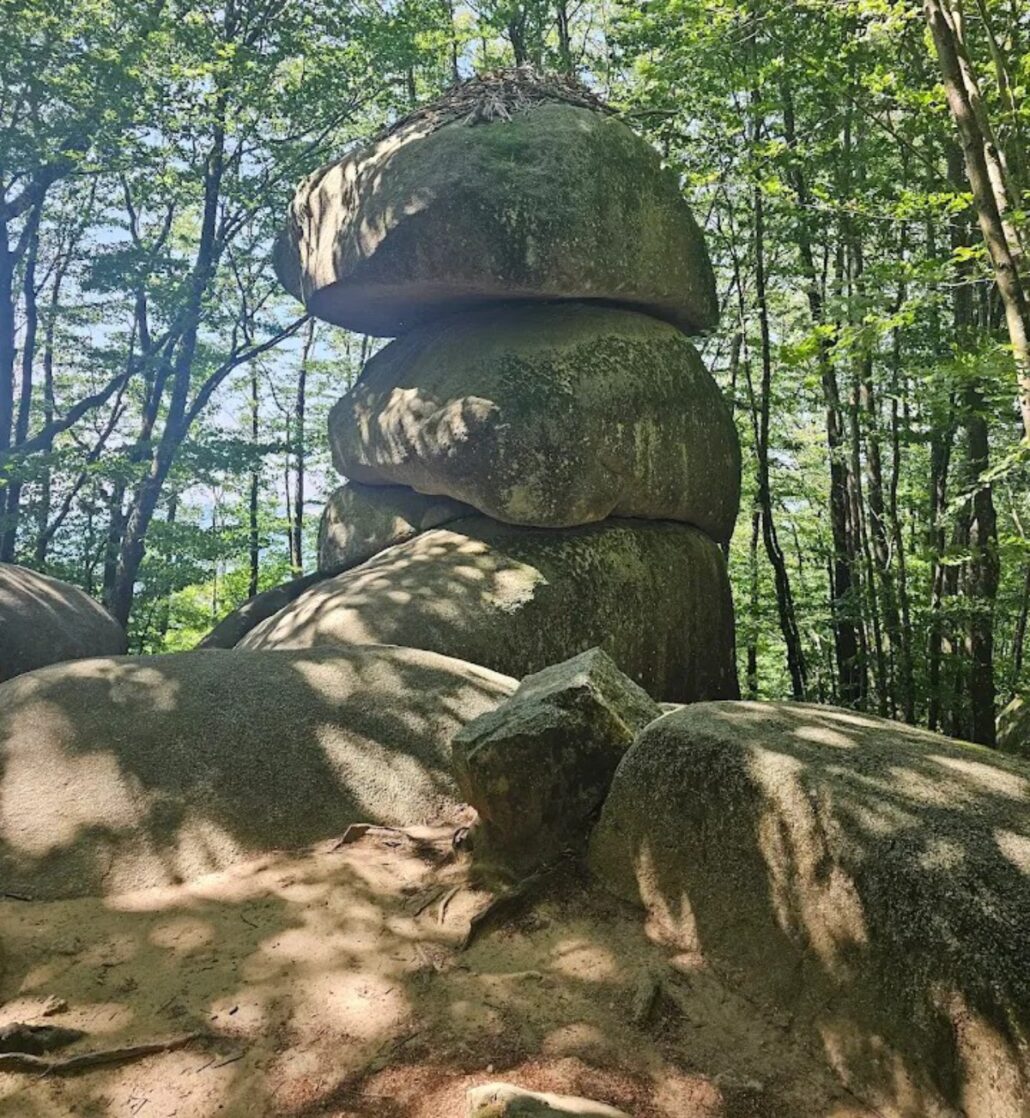 D’autres formes plus discrètes parsèment le sentier : la Tortue, la Grenouille, la Tête de Chien… Chaque rocher est une énigme, un fragment de légende. Certains disent qu’il s’agit de bûcherons, d’amoureux ou de géants pétrifiés par magie. La balade devient un jeu de piste entre mythe et réalité, où l’imagination des visiteurs est sans limite.