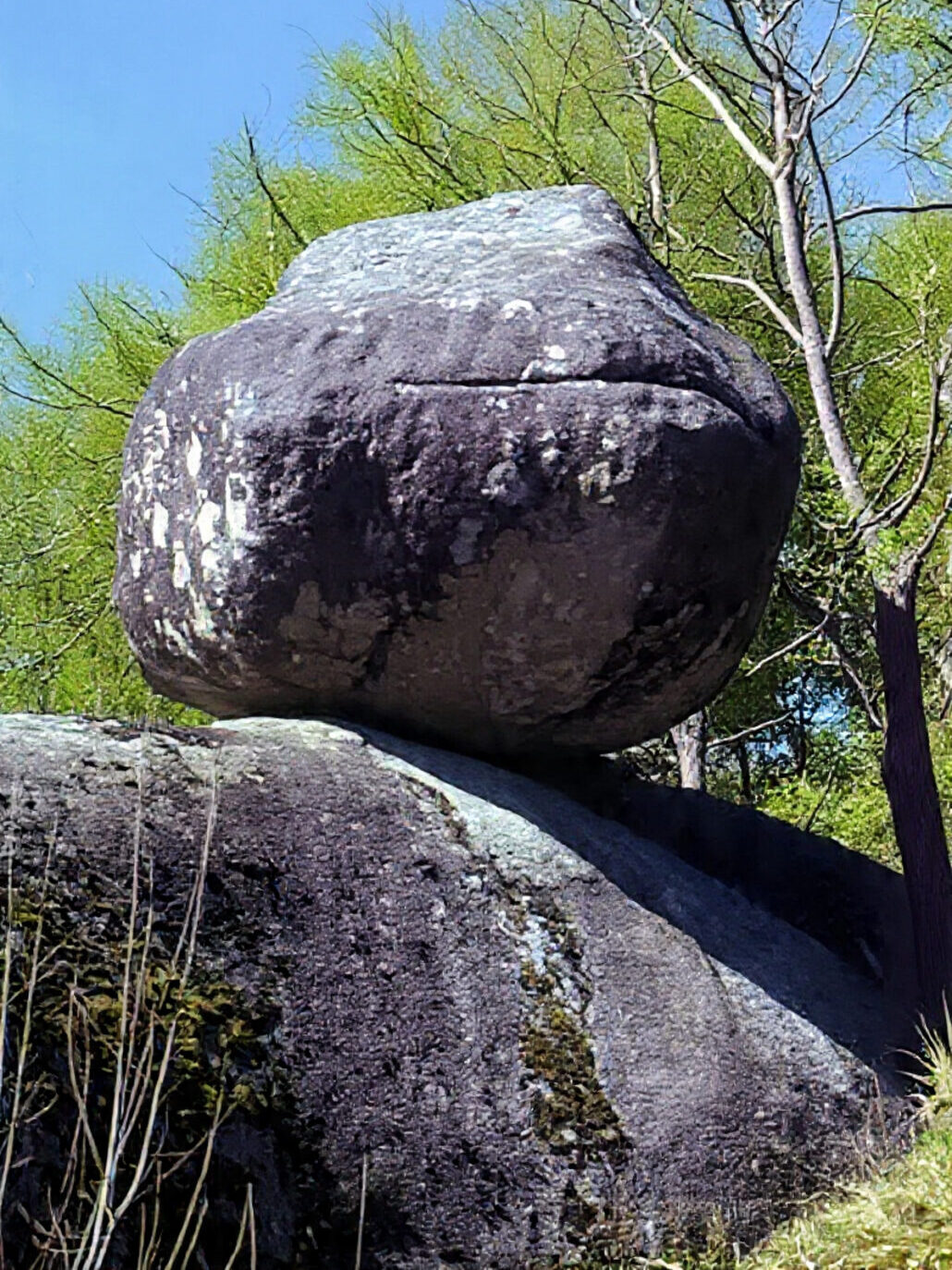 Ce gigantesque bloc de granit, d’environ 800 tonnes, semble défier les lois de la gravité. Posé en équilibre sur son socle, il bouge légèrement lorsqu’on exerce une pression au bon endroit — un phénomène qui intrigue autant qu’il amuse les visiteurs depuis des générations.