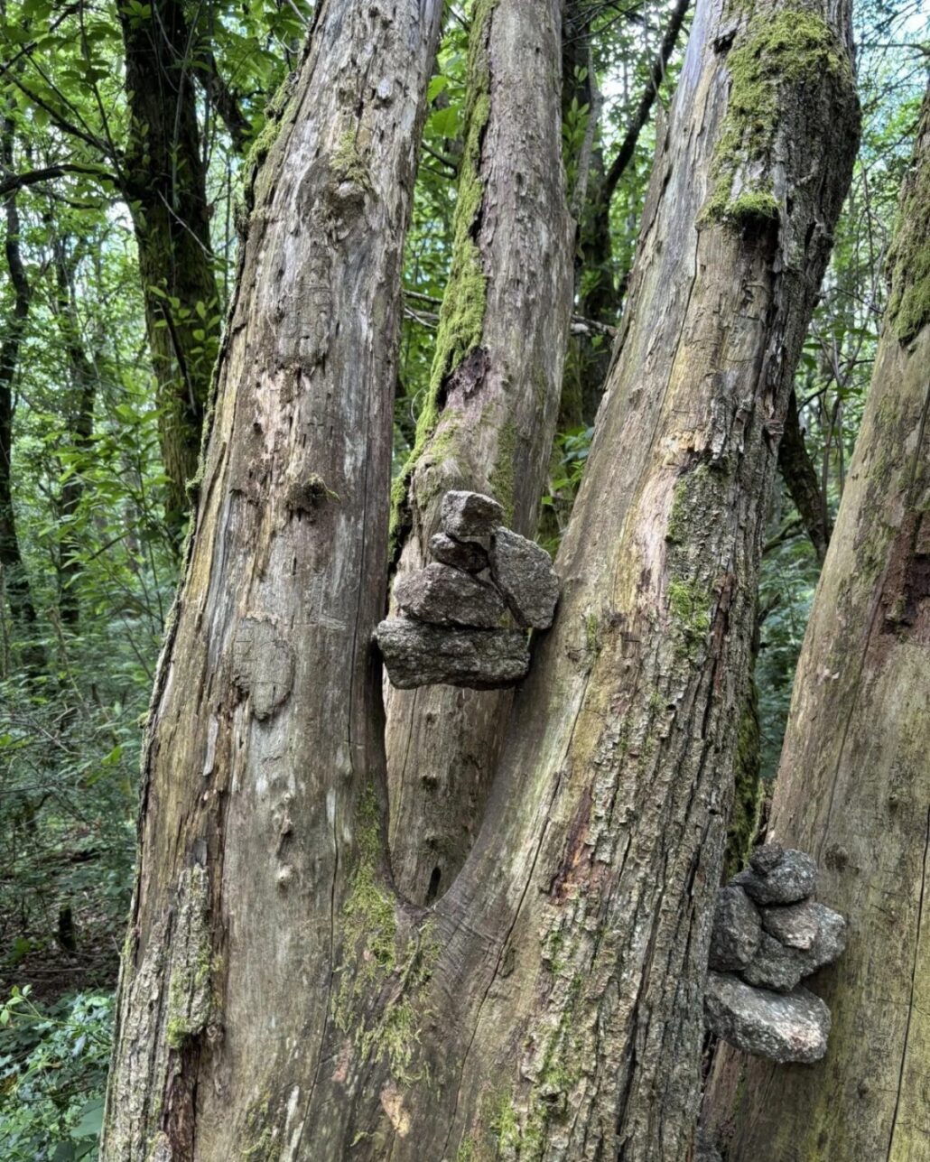 Mais aussi des arbres qui jaillissent des pierres, où le végétal et le minéral se mêlent intimement, unis par la mousse et le temps.