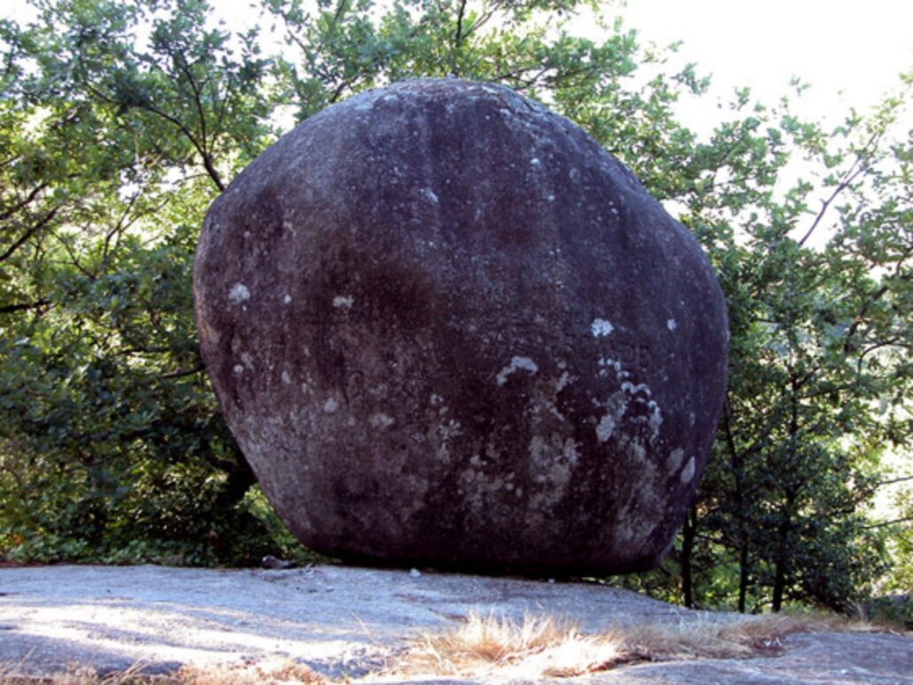 Un peu plus loin, la balade s’ouvre sur un autre curieux monument naturel : le Rocher de l’Œuf ou Œuf de la Rouquette un ancien rocher tremblant. On essaie, évidemment, de le faire bouger — mais rien à faire, il reste immobile, impassible, posé sur son socle de granit comme s’il gardait le secret des lieux.