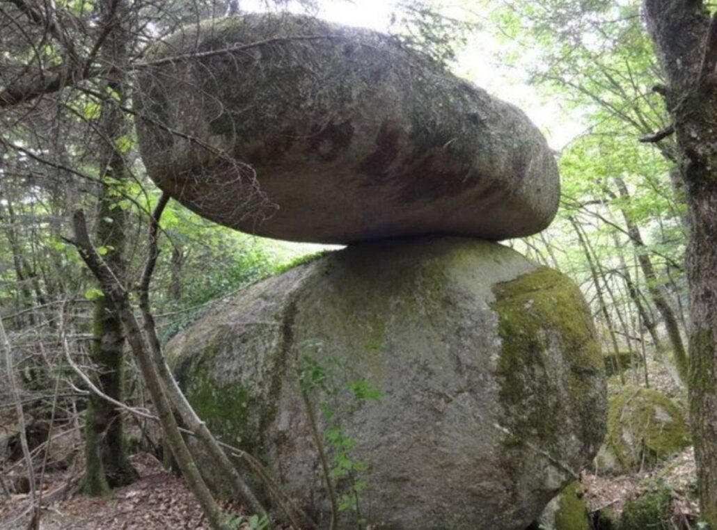C’est un bloc gigantesque, perché en équilibre au-dessus du ruisseau du Lézert, défiant toute logique. Il domine le vallon avec majesté.