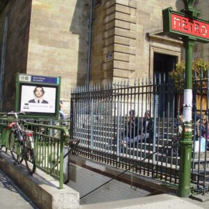Au-dessus de l’œuvre se trouve un collage de street art réalisé par Rue meurt d’art.