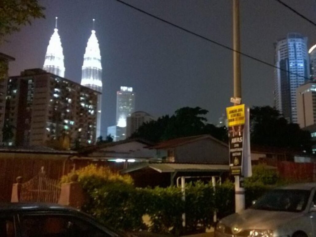 Les peintures des maisons sur pilotis ne sont plus très fraîches, mais l’arrière-plan avec les tours jumelles est saisissant.