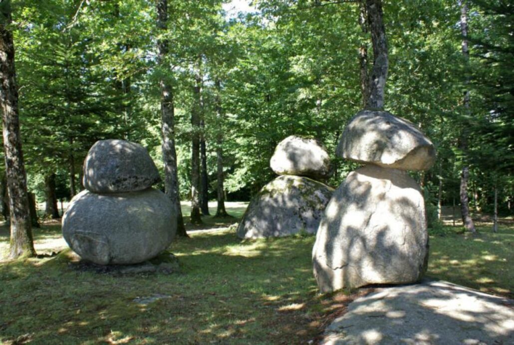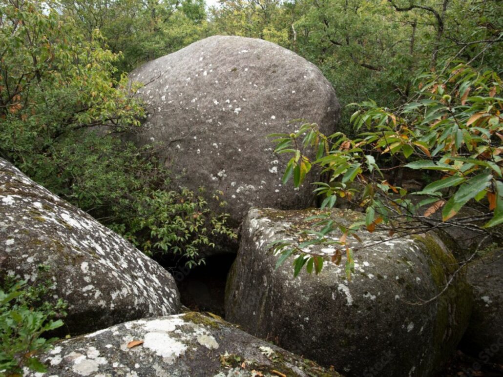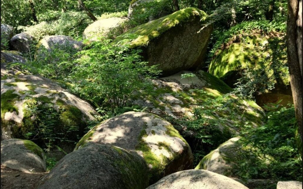 Sous les chênes et les pins, les pierres se dressent, s’empilent ou s’enchevêtrent, parfois couvertes de mousse, parfois fendues par les racines d’un arbre téméraire.