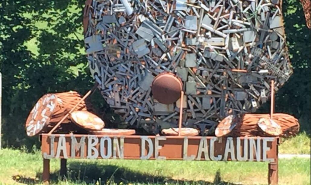 Chaque année, le passage du Tour est l’occasion pour les régions et communes de rivaliser d’imagination pour laisser une trace mémorable. Cette fois, Lacaune a choisi de célébrer sa spécialité la plus emblématique : le jambon. Plutôt que de proposer une animation éphémère, la ville a opté pour une installation durable, visible dès l’entrée, au carrefour des routes de Béziers et d’Albi.