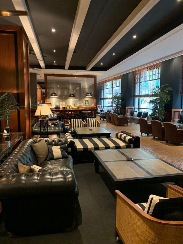 L’intérieur de l’Hôtel 1898 est tout aussi impressionnant, rendant hommage au patrimoine colonial du bâtiment grâce à des boiseries riches, des briques apparentes et des détails en cuir raffinés.