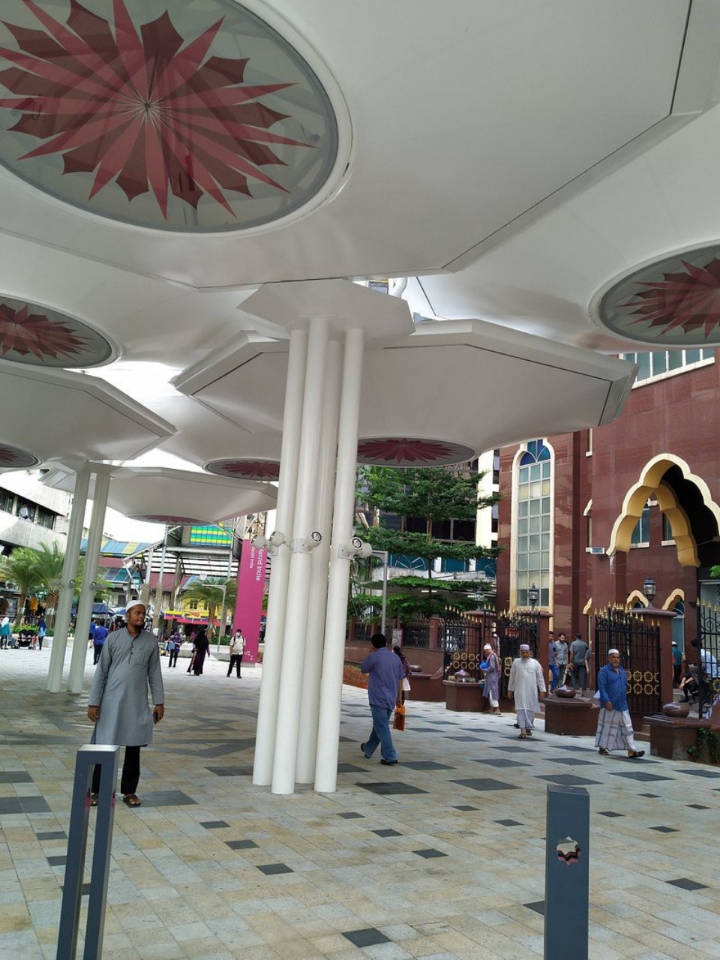 – Un style marqué par l’Inde du Sud : Bien que reconstruite dans les années 1960, Masjid India garde des traits architecturaux hérités des communautés qui l’ont fondée : minaret élancé, coupoles bulbeuses, arcs légèrement festonnés… un clin d’œil chaleureux aux racines dravidiennes.