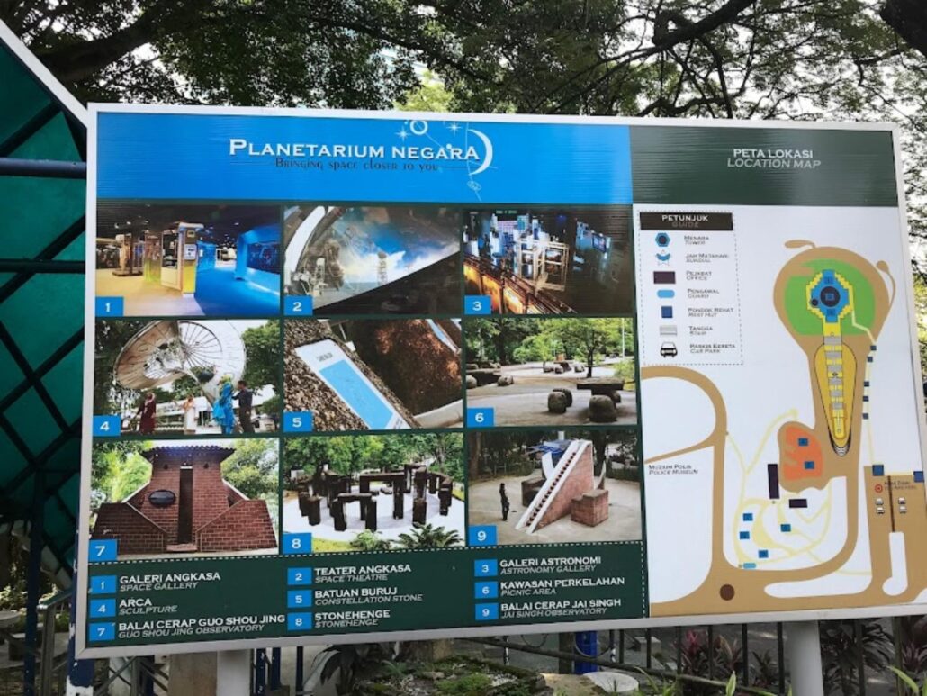 Reconnaissable à son impressionnant dôme bleu, le planétarium national de Malaisie est situé située sur le plateau à l’est du parc du lac à côté de la mosquée nationale et du parc à Oiseaux.