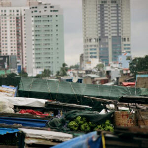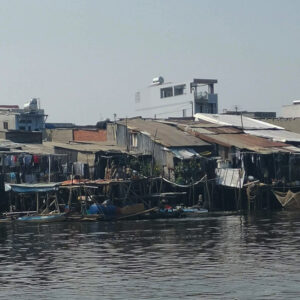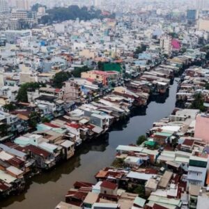 La croissance exceptionnelle de Ho Chi Minh, l’élévation du niveau de la mer, la salinisation des rivières, et l’affaissement des sols à cause des extractions souterraines non contrôlées contribuent à l’effondrement des berges et à sa contamination. Les berges minées par le dragage s’effondrent, entraînant avec elles des champs, des étangs de pisciculture, des magasins et des maisons. (Plus d’infos)