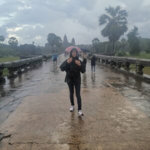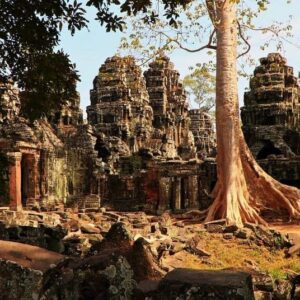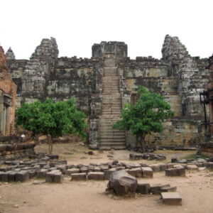 Dédié au dieu Vishnou, le temple de Prasat Kravan, fut construit en 921 et restauré il y a une quarantaine d’année. Entièrement construit en briques d’argile, il est célèbre par ses nombreuses représentations du Dieu Vishnou. Les tours septentrionales sont ornées de bas reliefs représentant la déesse Lakshmi l’épouse de Vishnou. Ces sculptures en brique à l’intérieur d’un monument sont uniques dans l’architecture khmère.