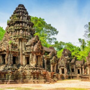 Un petit monument de l’époque d’Angkor avec des bas-reliefs uniques.