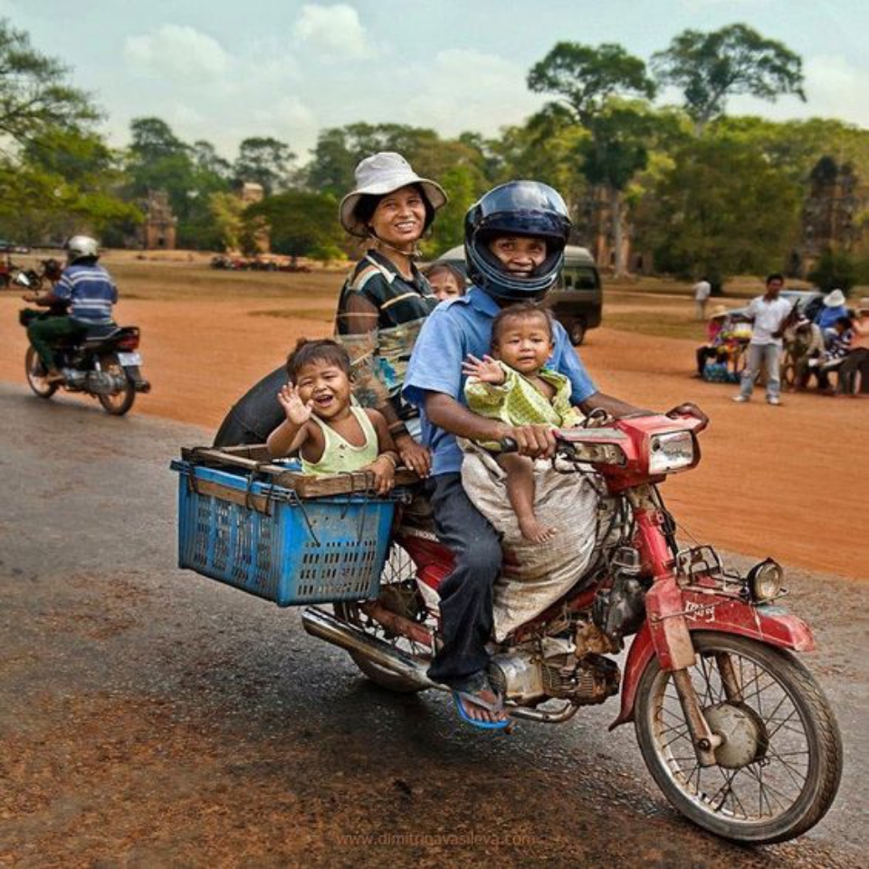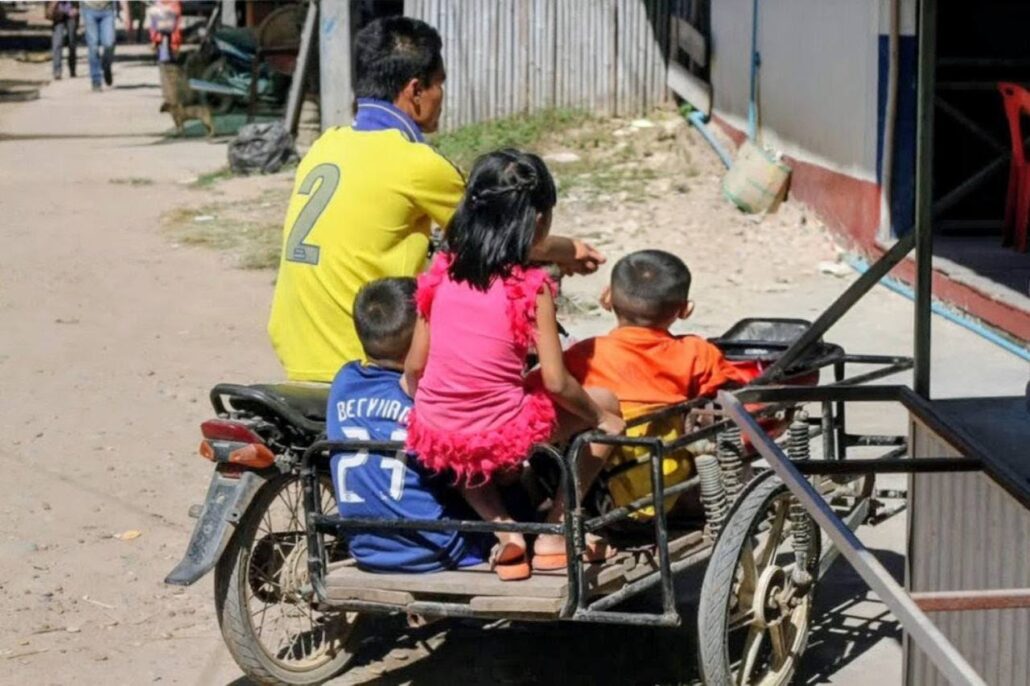 La première chose qui frappe, c’est le sourire des enfants. Entre excitation et fous rires, ils semblent oublier tout danger potentiel. Il y a un petit chef devant, qui tient le guidon à moitié comme un copilote, et derrière, chaque siège, chaque marchette improvisée est occupée. La moto tangue à peine sous le poids collectif, preuve que l’expérience et la coordination font partie intégrante de cette prouesse.